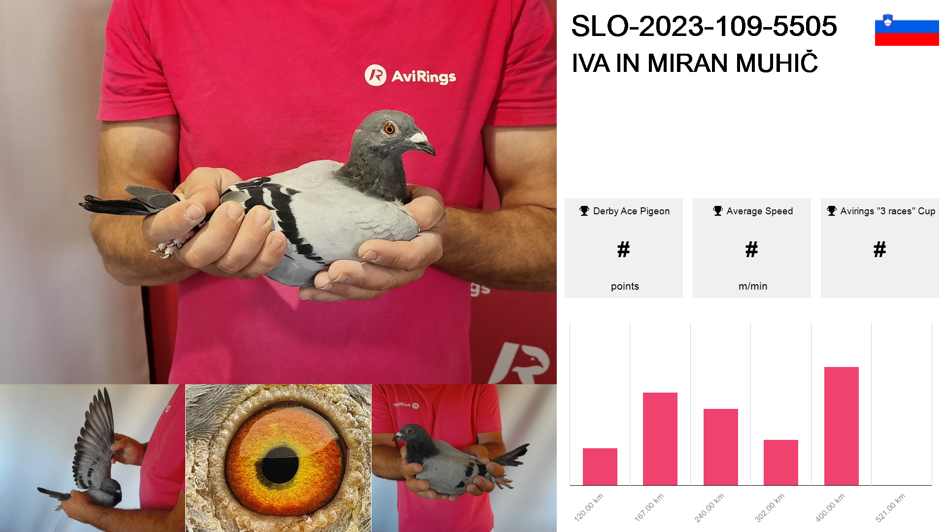 | Race | Position | Number of pigeons | Percent | Speed | Distance |