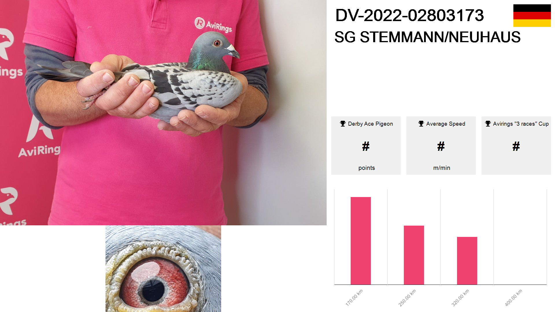 | Race | Position | Number of pigeons | Percent | Speed | Distance |