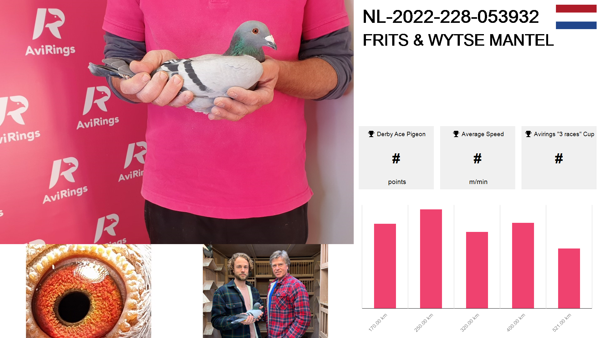 | Race | Position | Number of pigeons | Percent | Speed | Distance |