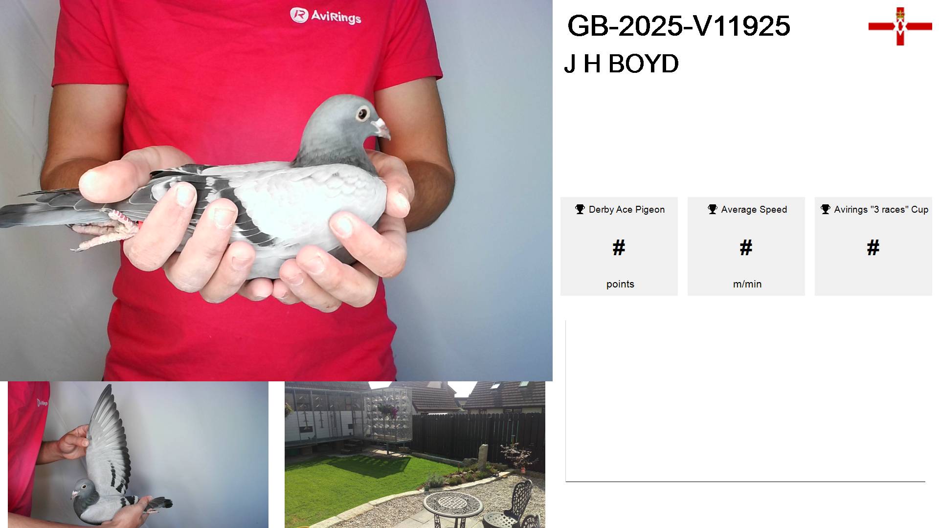 | Race | Position | Number of pigeons | Percent | Speed | Distance |