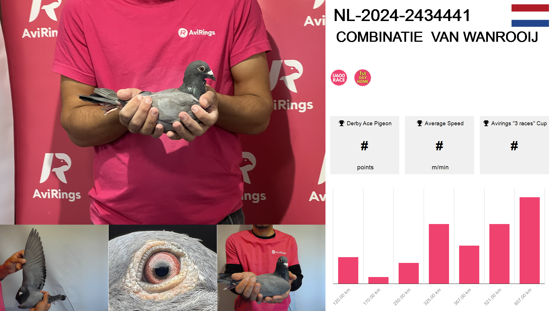 | Race | Position | Number of pigeons | Percent | Speed | Distance |