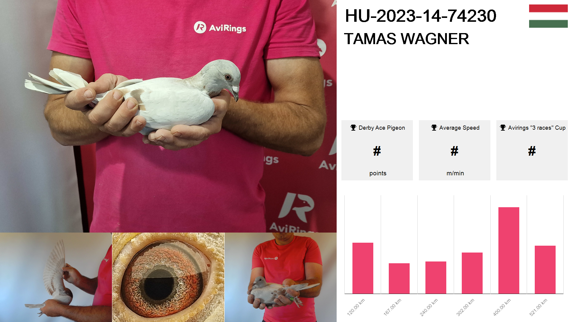 | Race | Position | Number of pigeons | Percent | Speed | Distance |