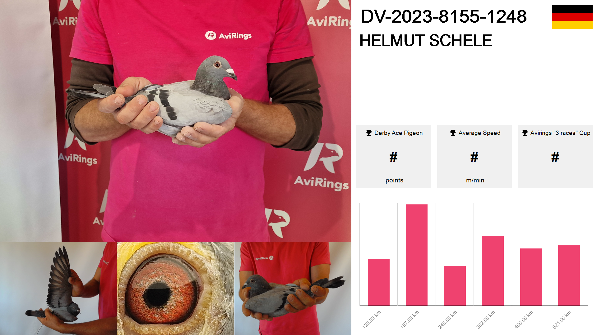 | Race | Position | Number of pigeons | Percent | Speed | Distance |