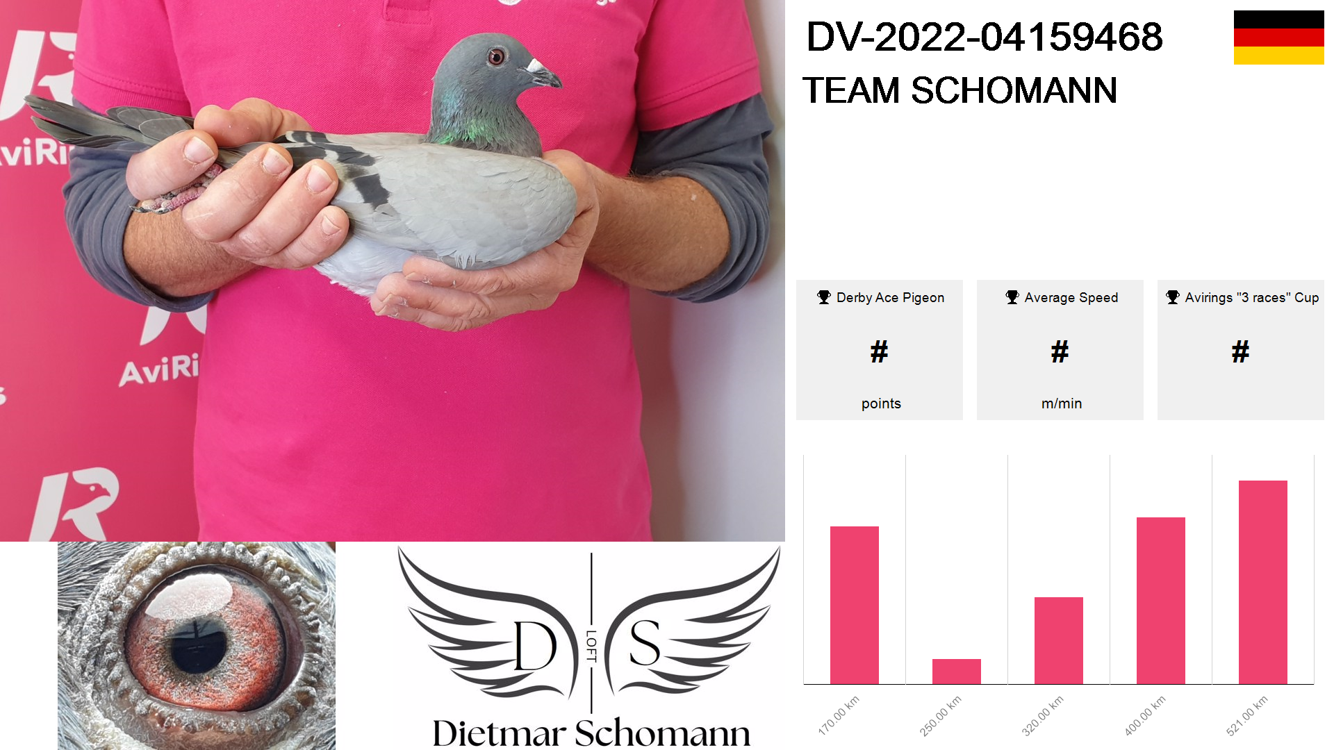 | Race | Position | Number of pigeons | Percent | Speed | Distance |