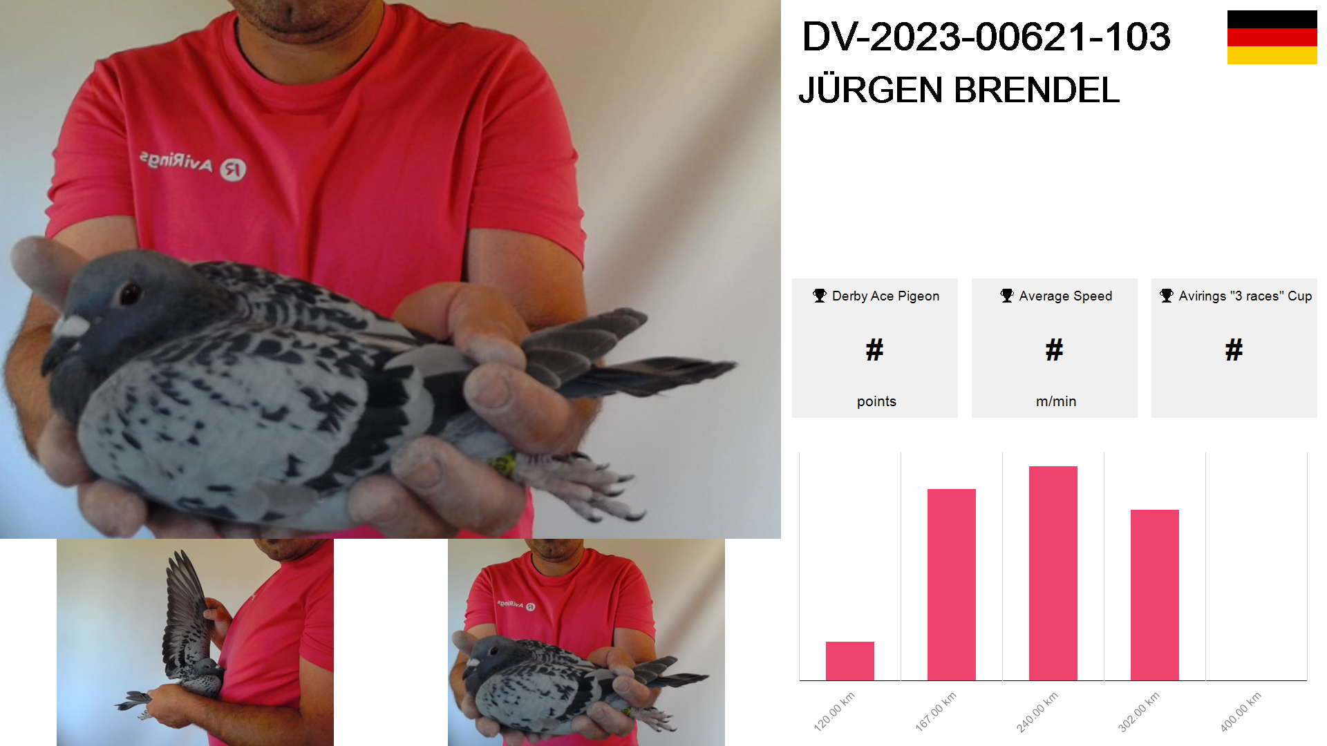 | Race | Position | Number of pigeons | Percent | Speed | Distance |