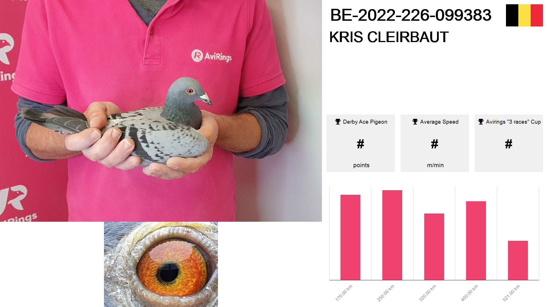 | Race | Position | Number of pigeons | Percent | Speed | Distance |