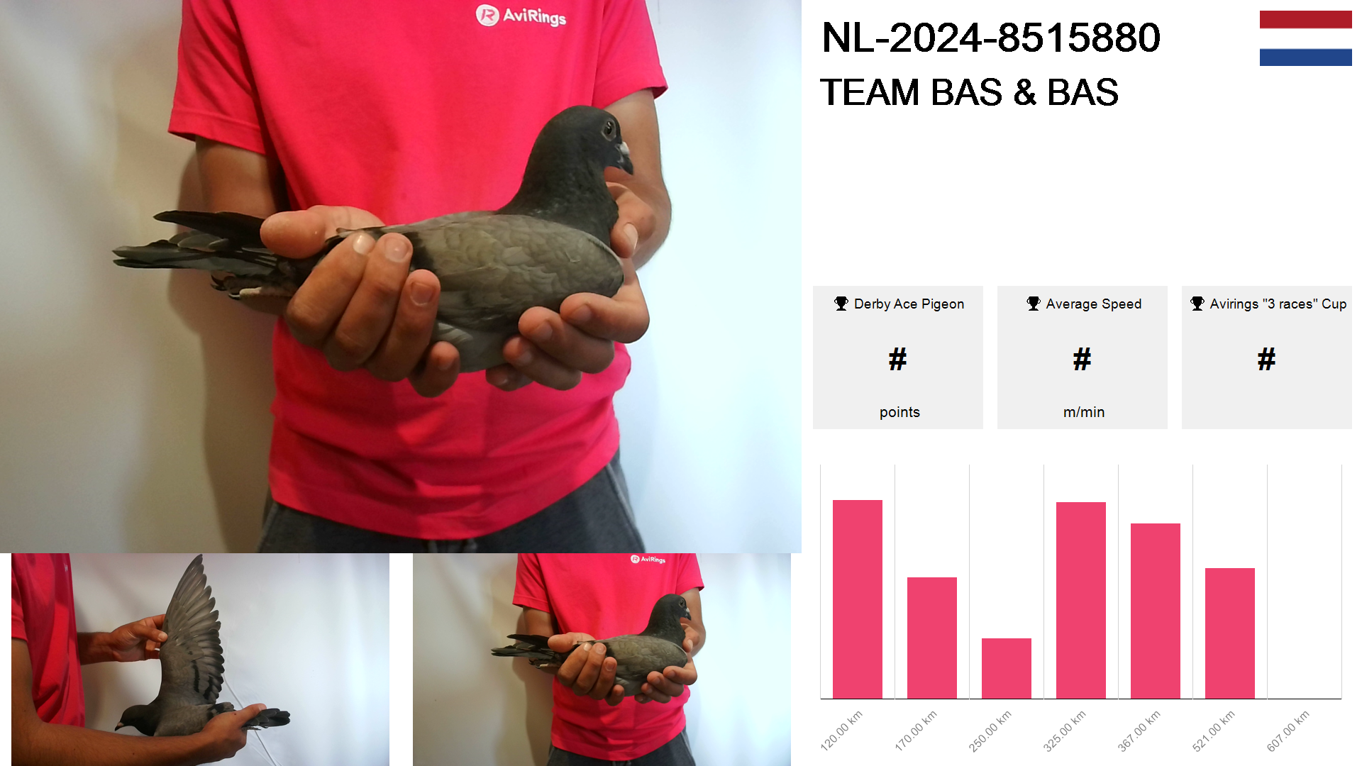 | Race | Position | Number of pigeons | Percent | Speed | Distance |