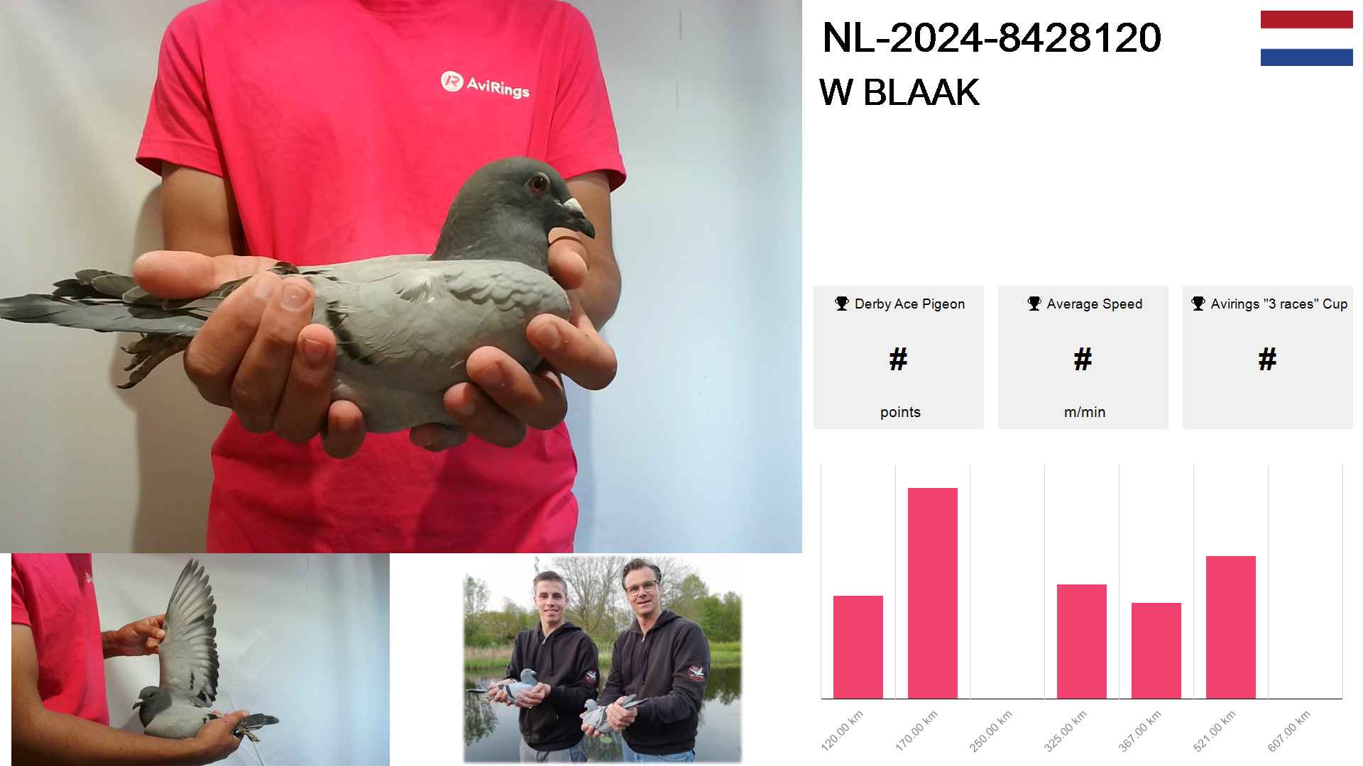 | Race | Position | Number of pigeons | Percent | Speed | Distance |