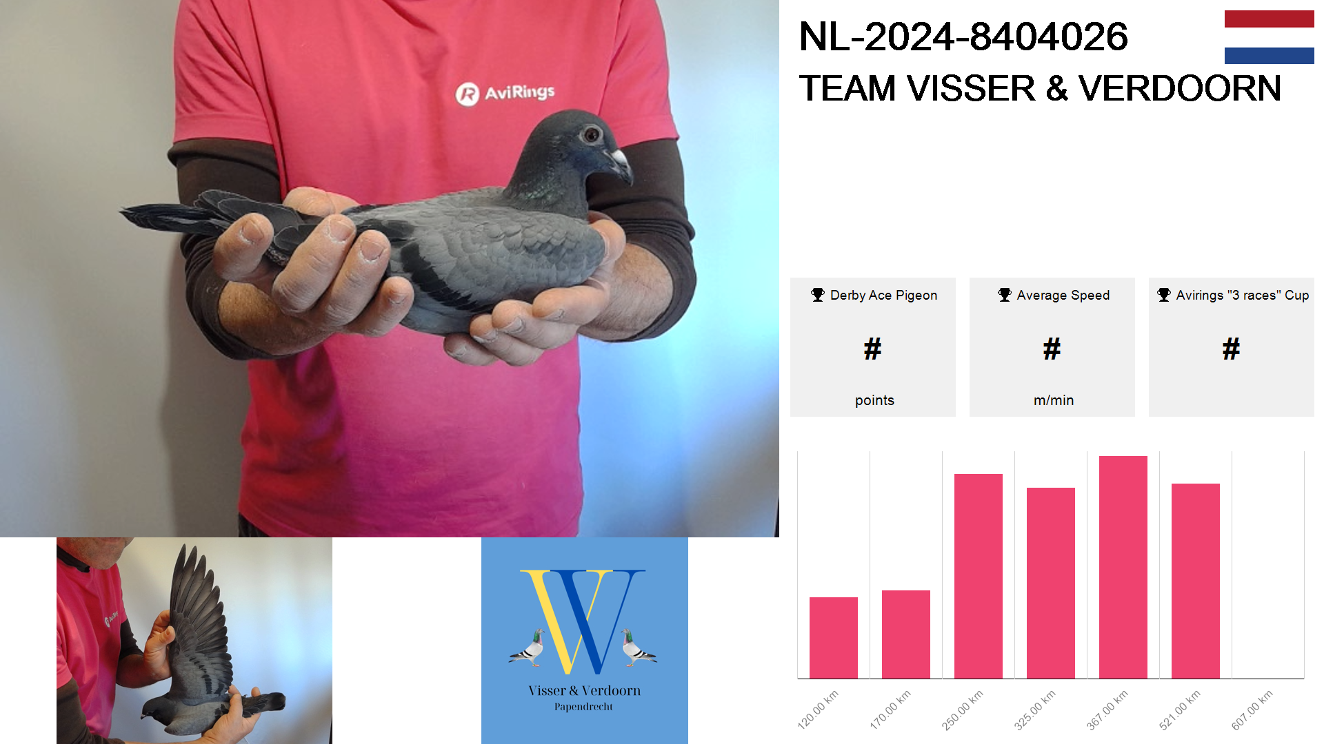 | Race | Position | Number of pigeons | Percent | Speed | Distance |