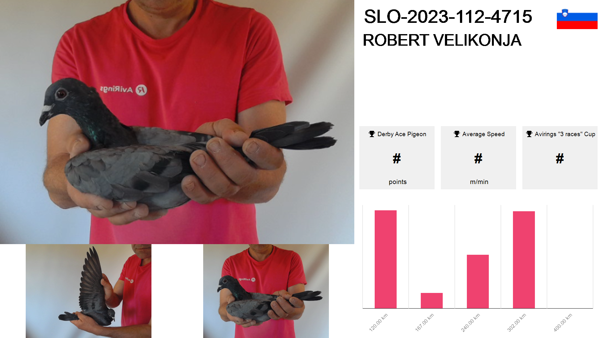 | Race | Position | Number of pigeons | Percent | Speed | Distance |