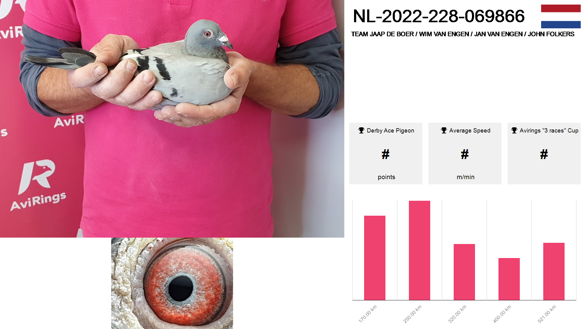 | Race | Position | Number of pigeons | Percent | Speed | Distance |