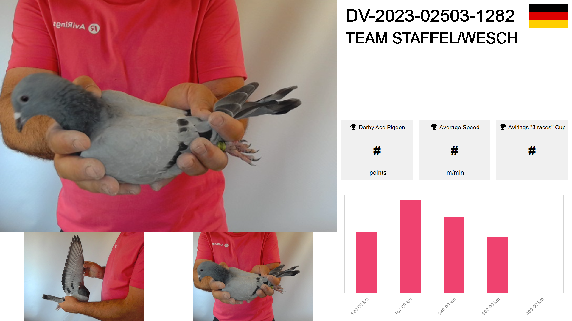 | Race | Position | Number of pigeons | Percent | Speed | Distance |