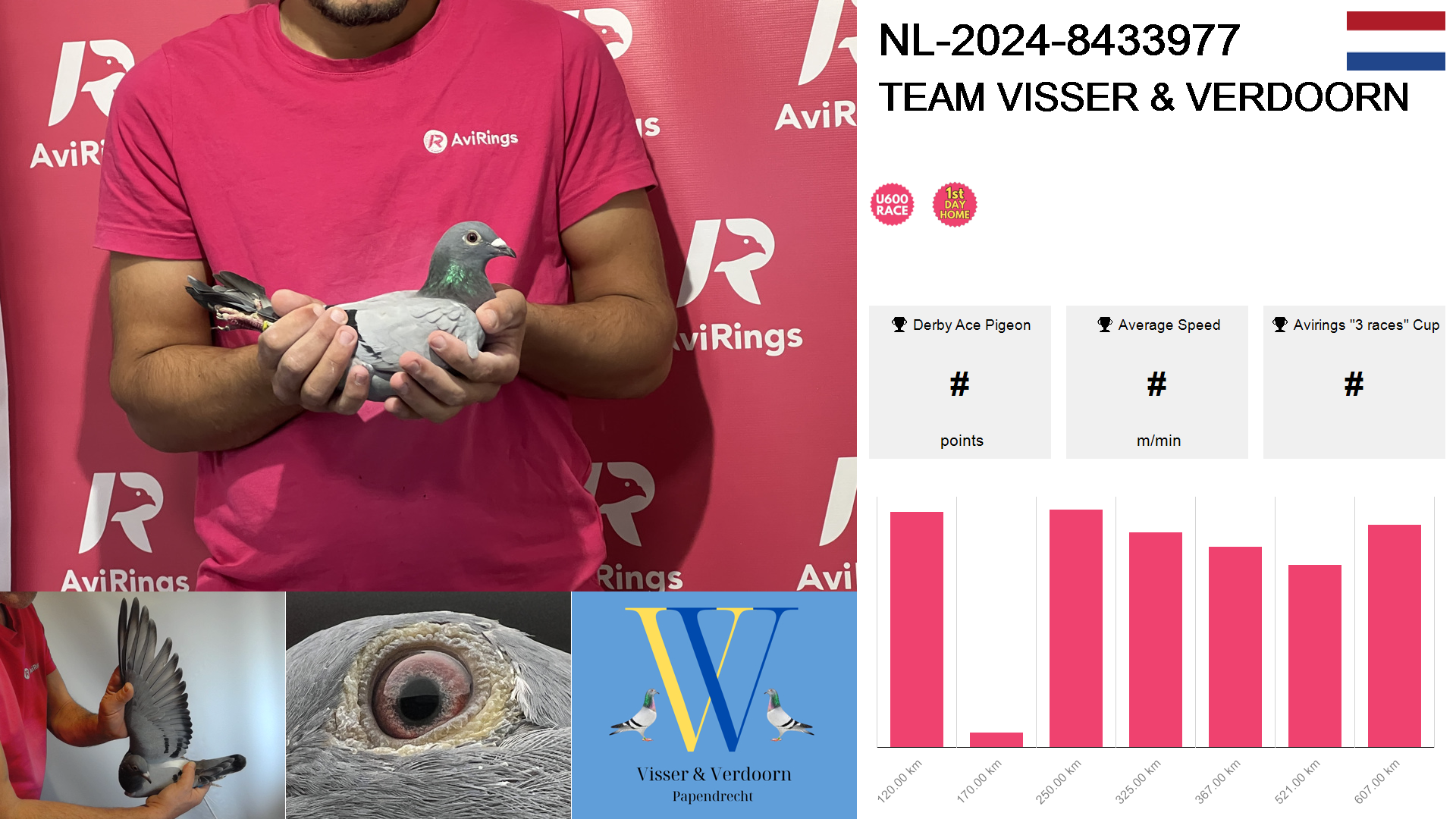 | Race | Position | Number of pigeons | Percent | Speed | Distance |