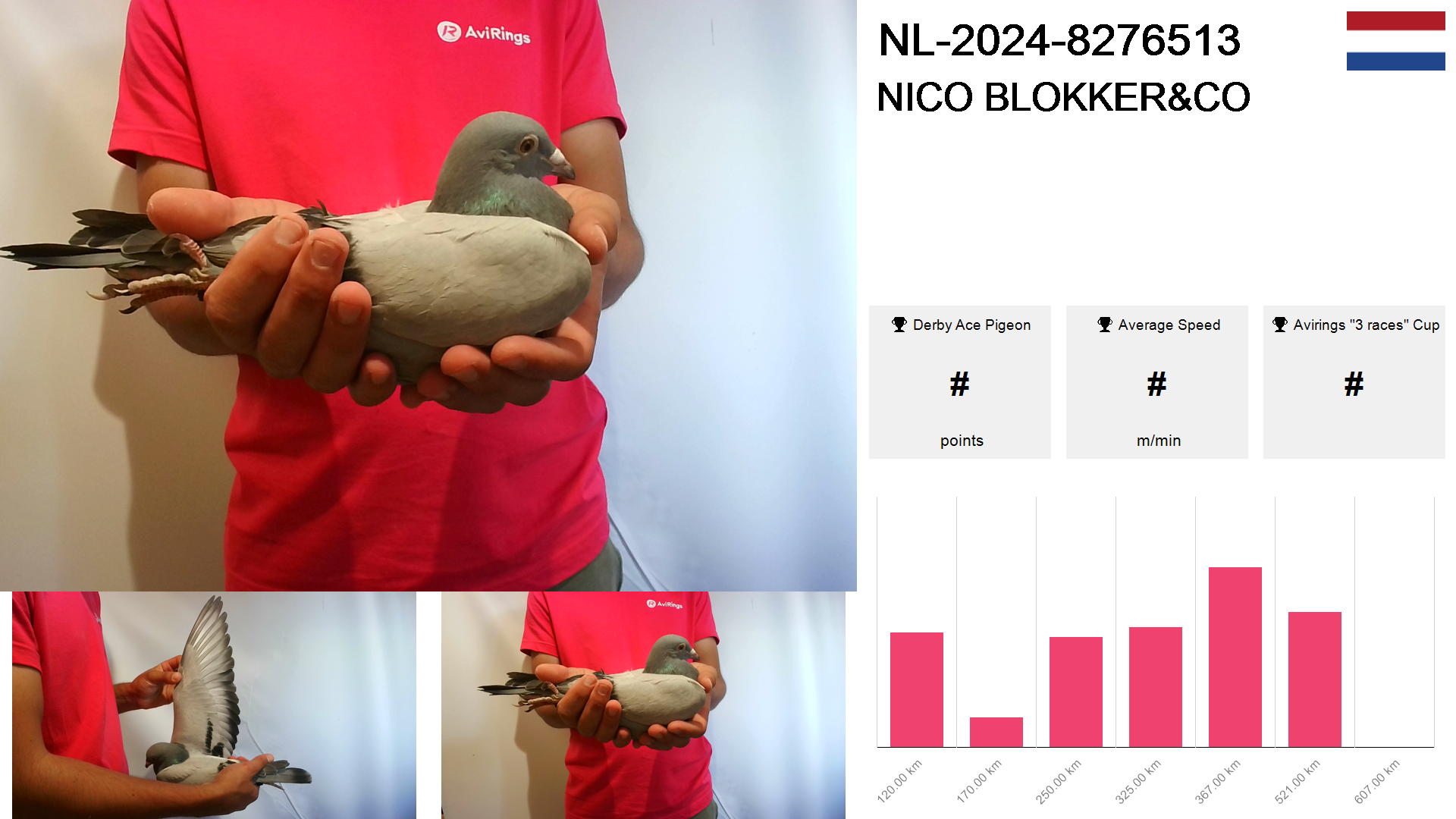 | Race | Position | Number of pigeons | Percent | Speed | Distance |