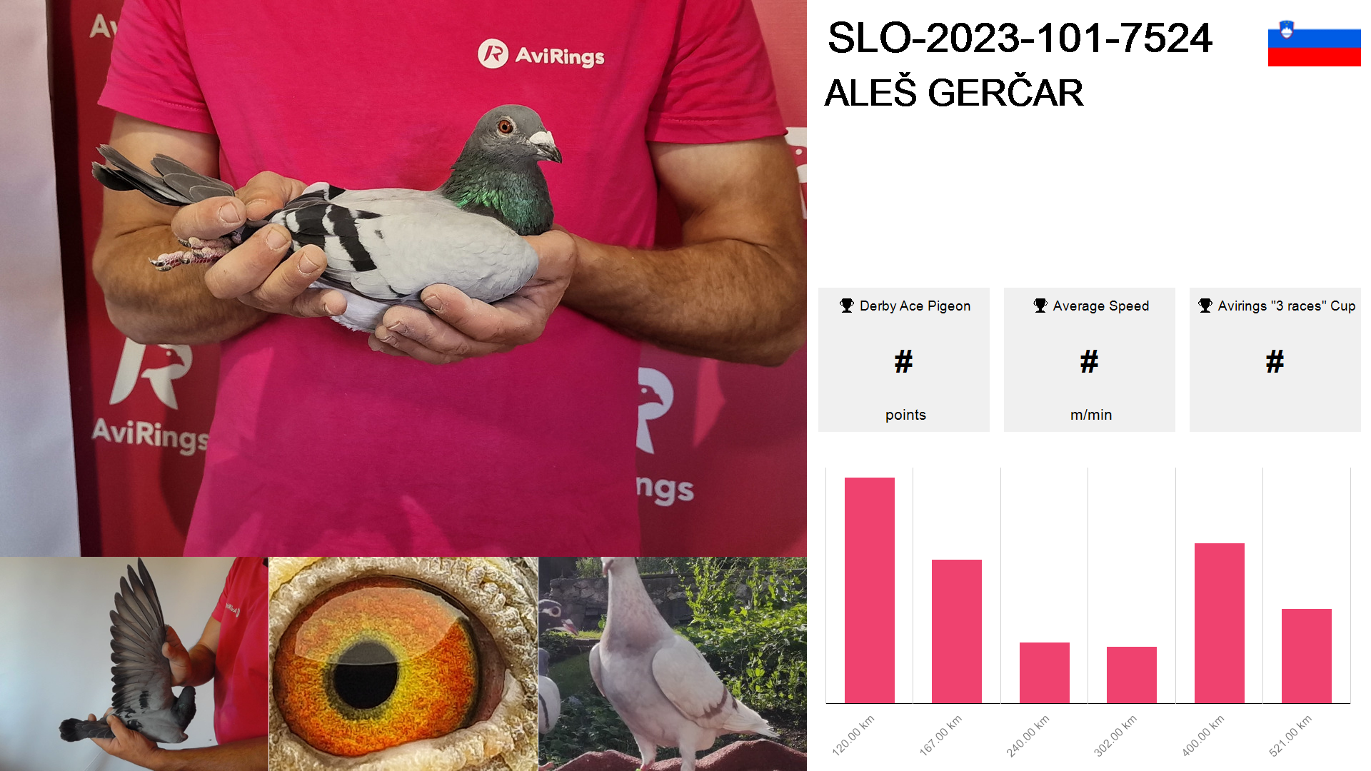 | Race | Position | Number of pigeons | Percent | Speed | Distance |