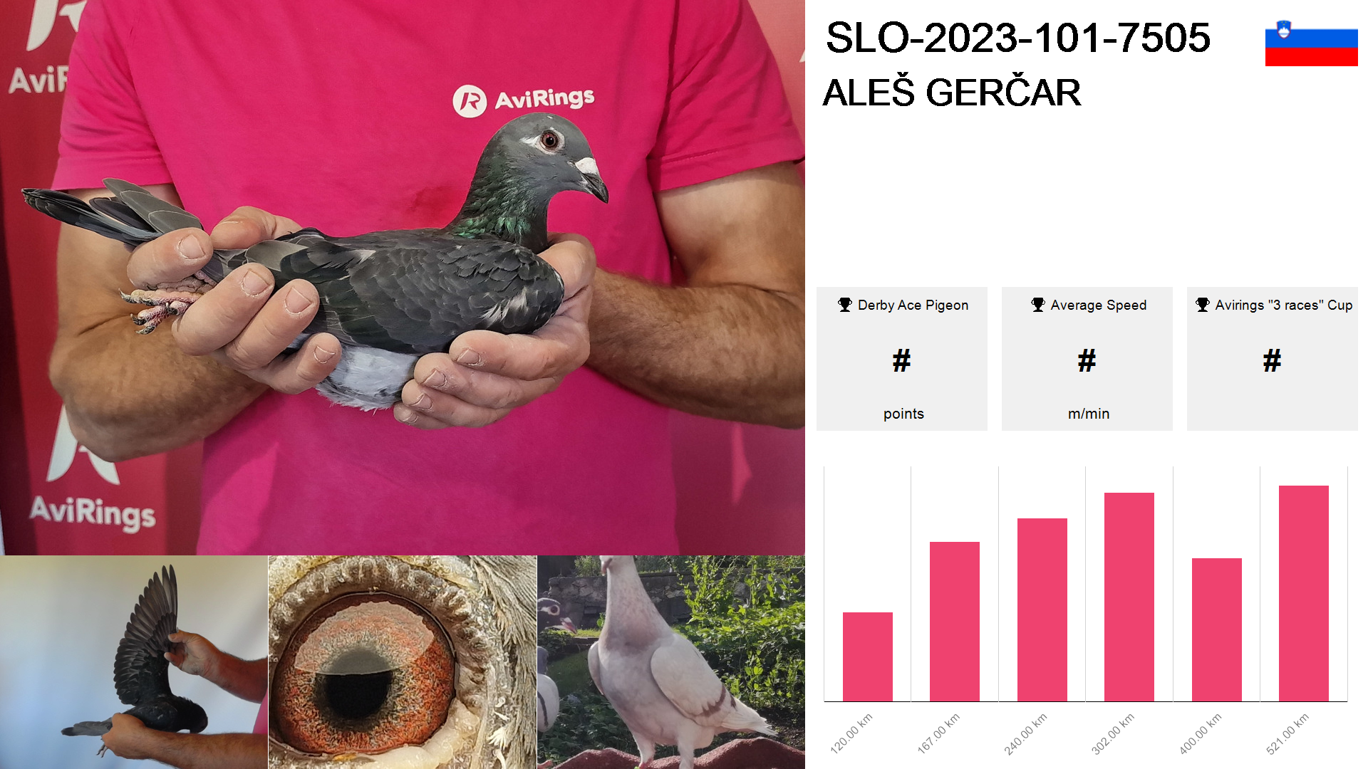 | Race | Position | Number of pigeons | Percent | Speed | Distance |