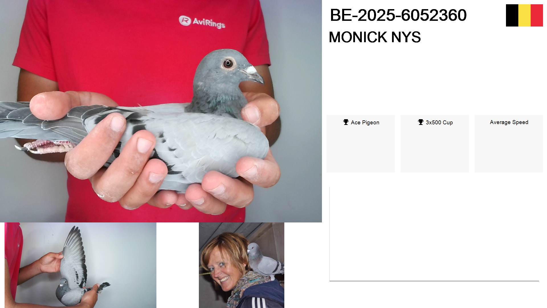 | Race | Position | Number of pigeons | Percent | Speed | Distance |