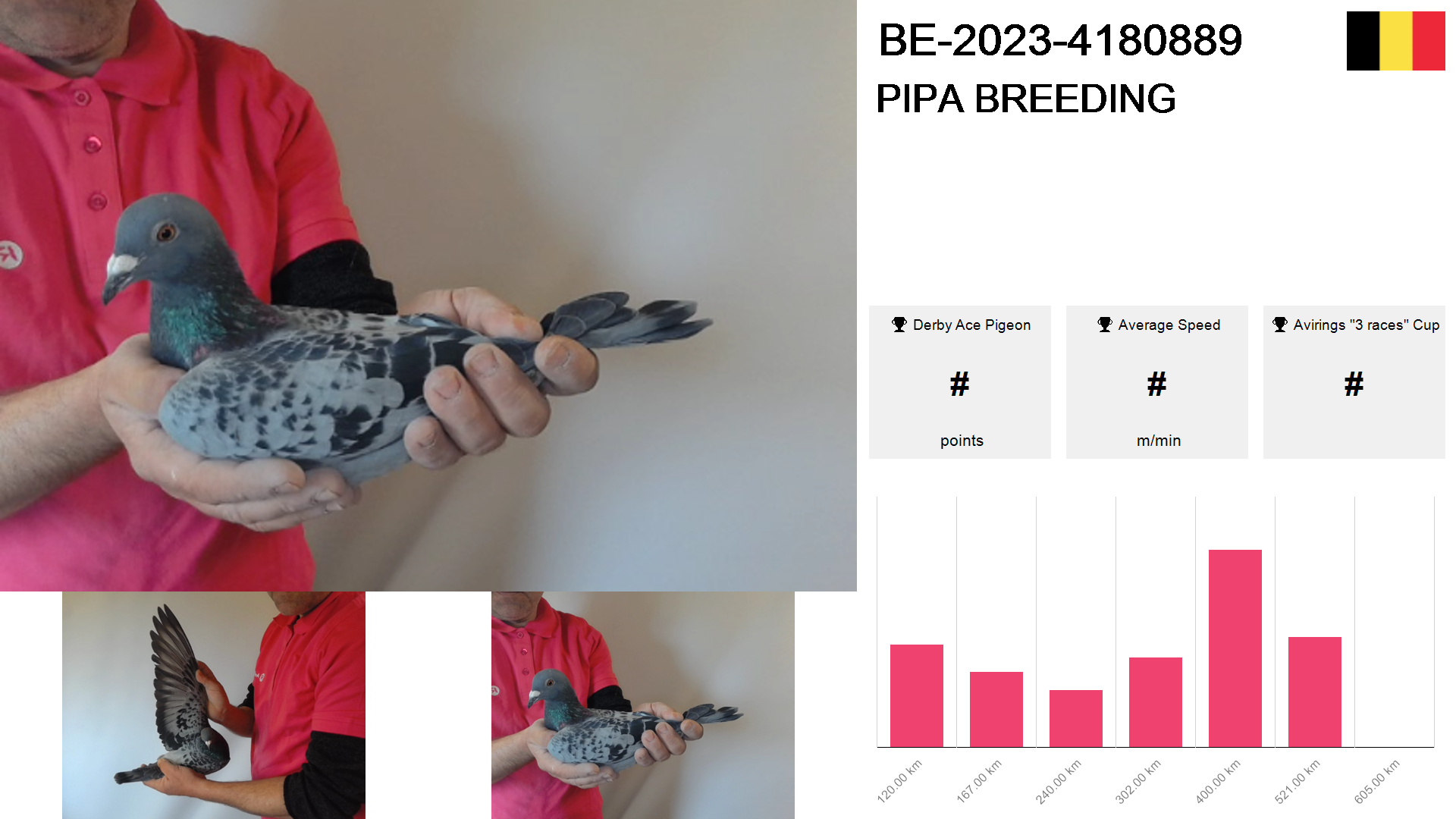 | Race | Position | Number of pigeons | Percent | Speed | Distance |