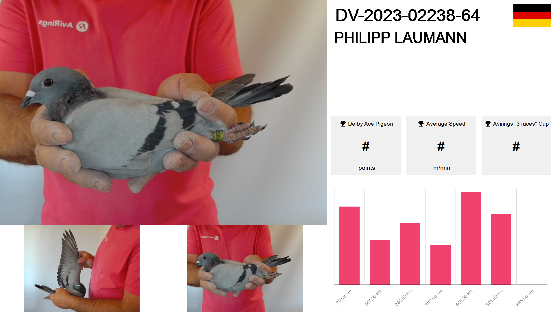 | Race | Position | Number of pigeons | Percent | Speed | Distance |
