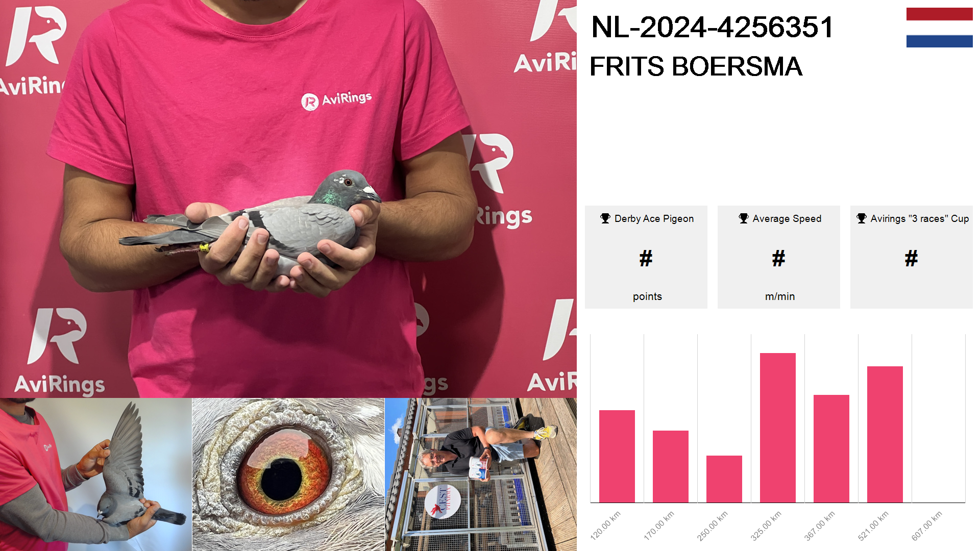 | Race | Position | Number of pigeons | Percent | Speed | Distance |