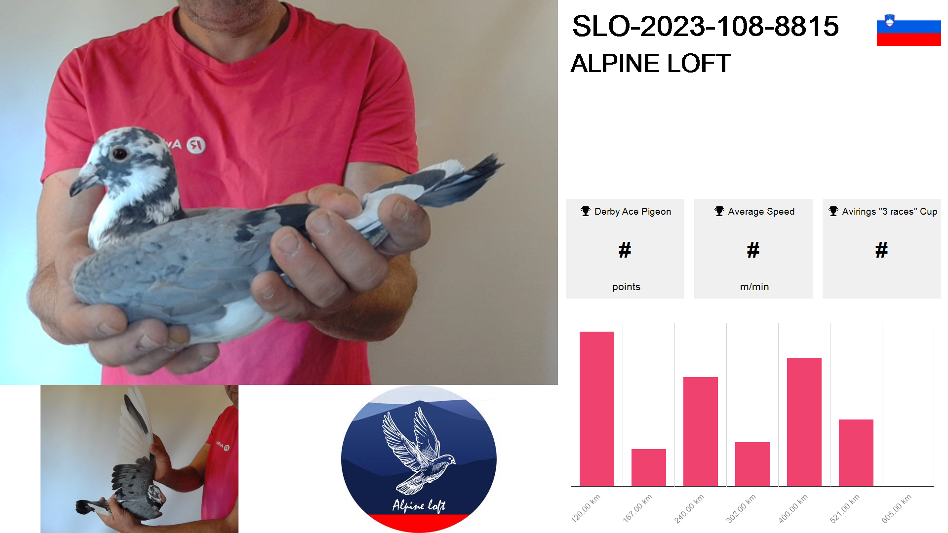 | Race | Position | Number of pigeons | Percent | Speed | Distance |
