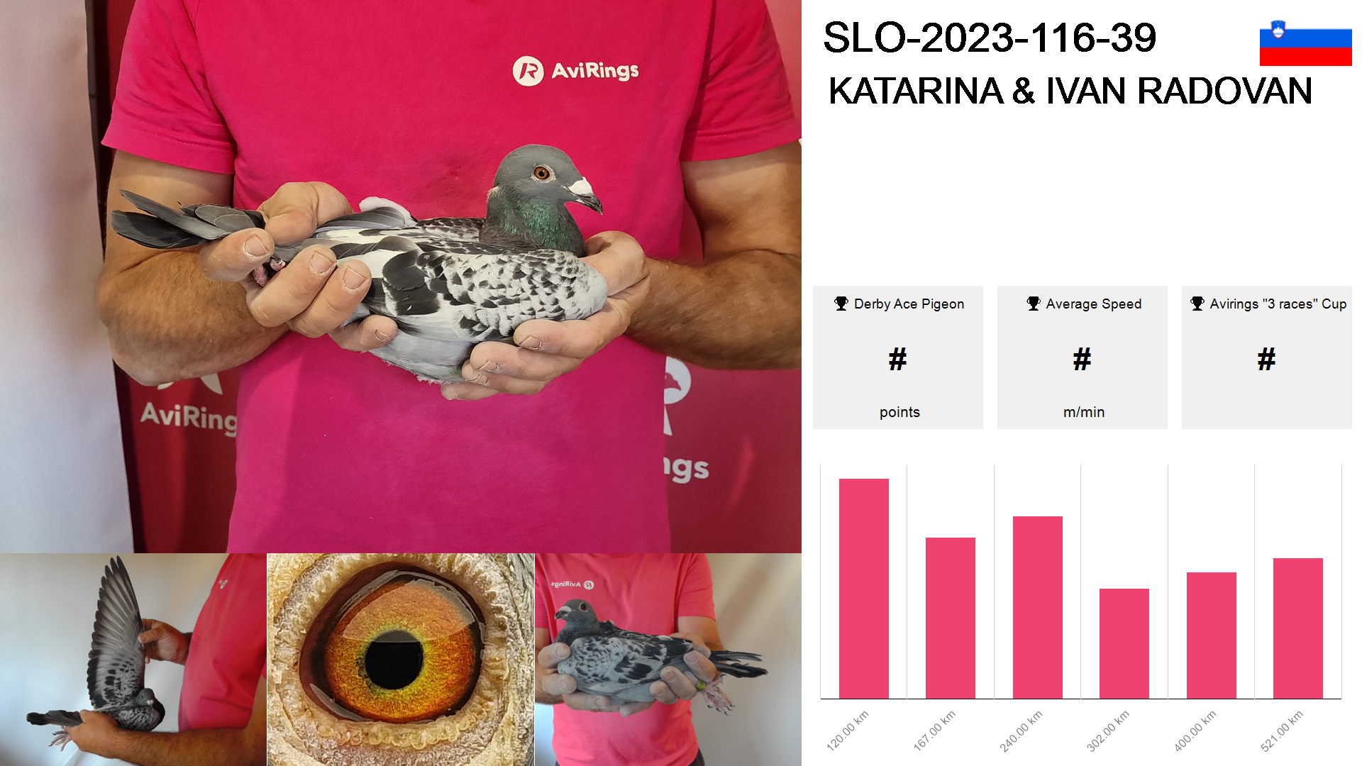| Race | Position | Number of pigeons | Percent | Speed | Distance |