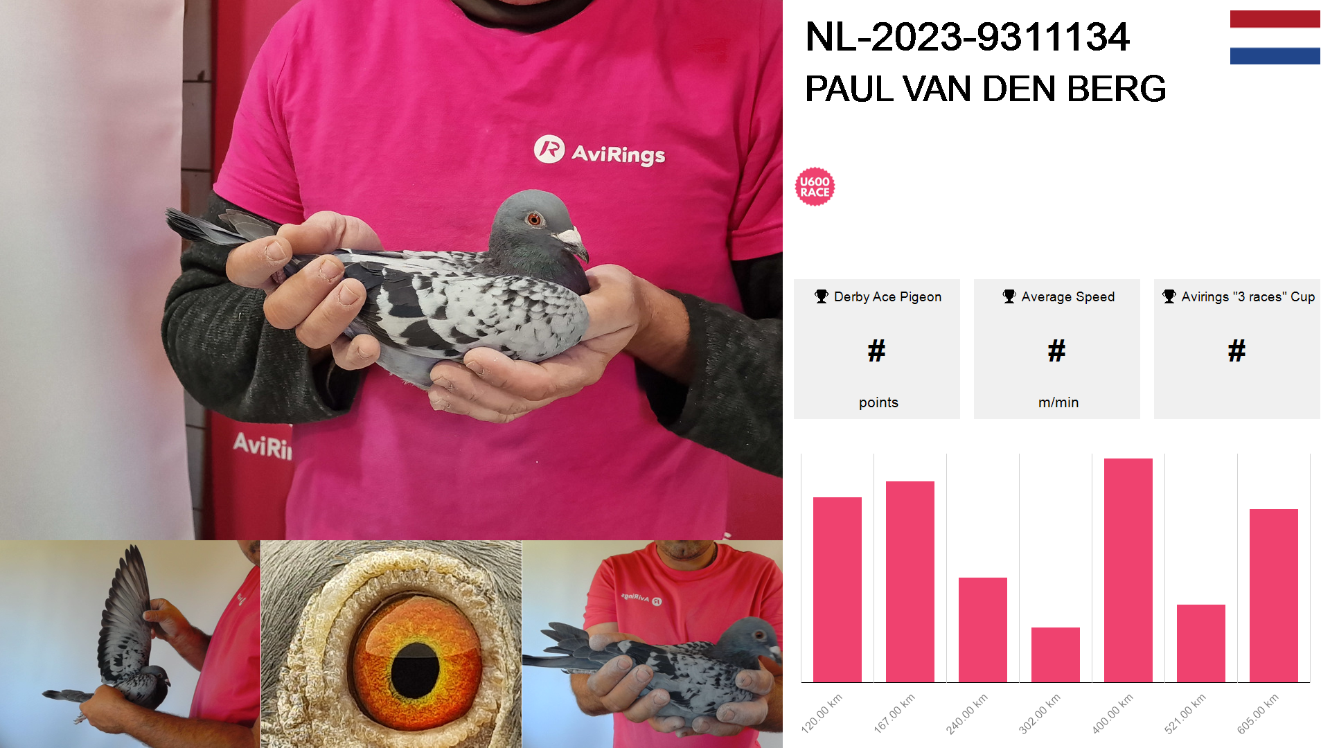 | Race | Position | Number of pigeons | Percent | Speed | Distance |