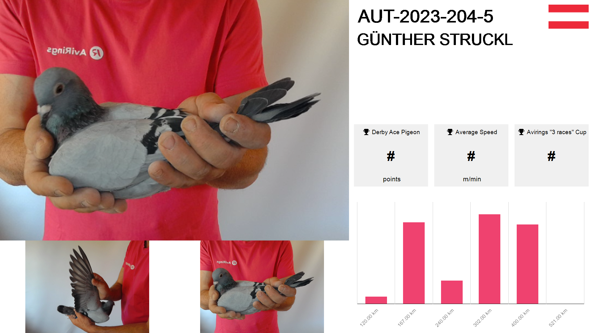 | Race | Position | Number of pigeons | Percent | Speed | Distance |
