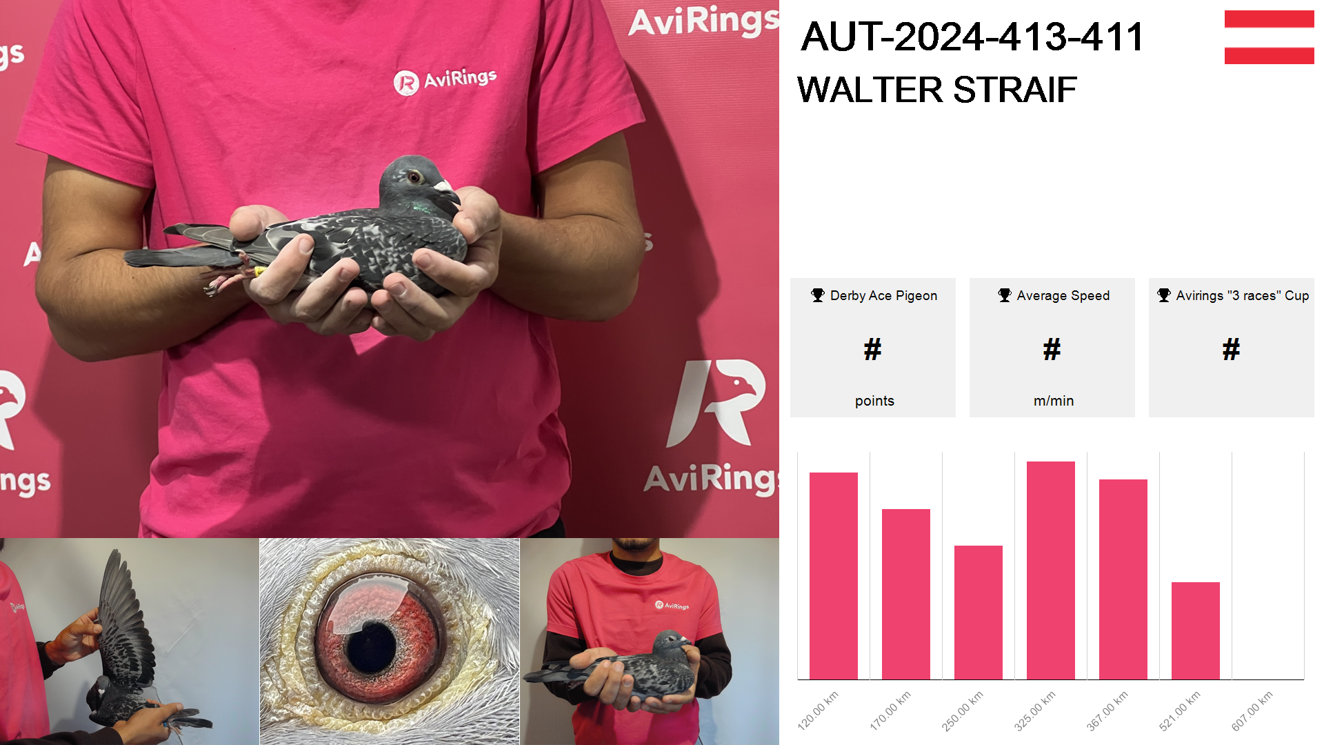 | Race | Position | Number of pigeons | Percent | Speed | Distance |