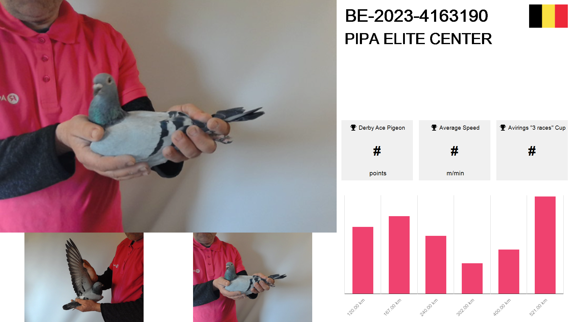 | Race | Position | Number of pigeons | Percent | Speed | Distance |