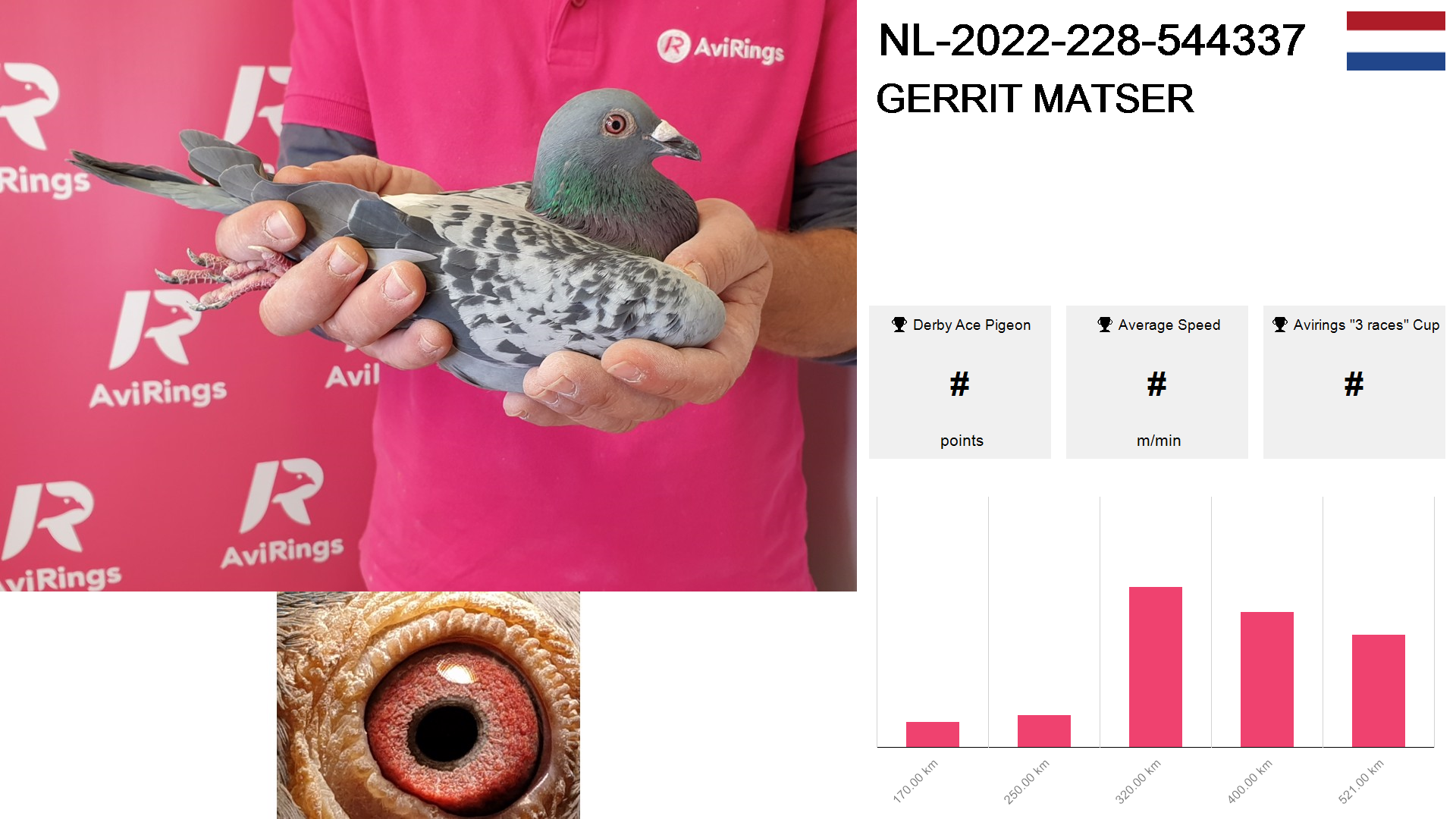 | Race | Position | Number of pigeons | Percent | Speed | Distance |