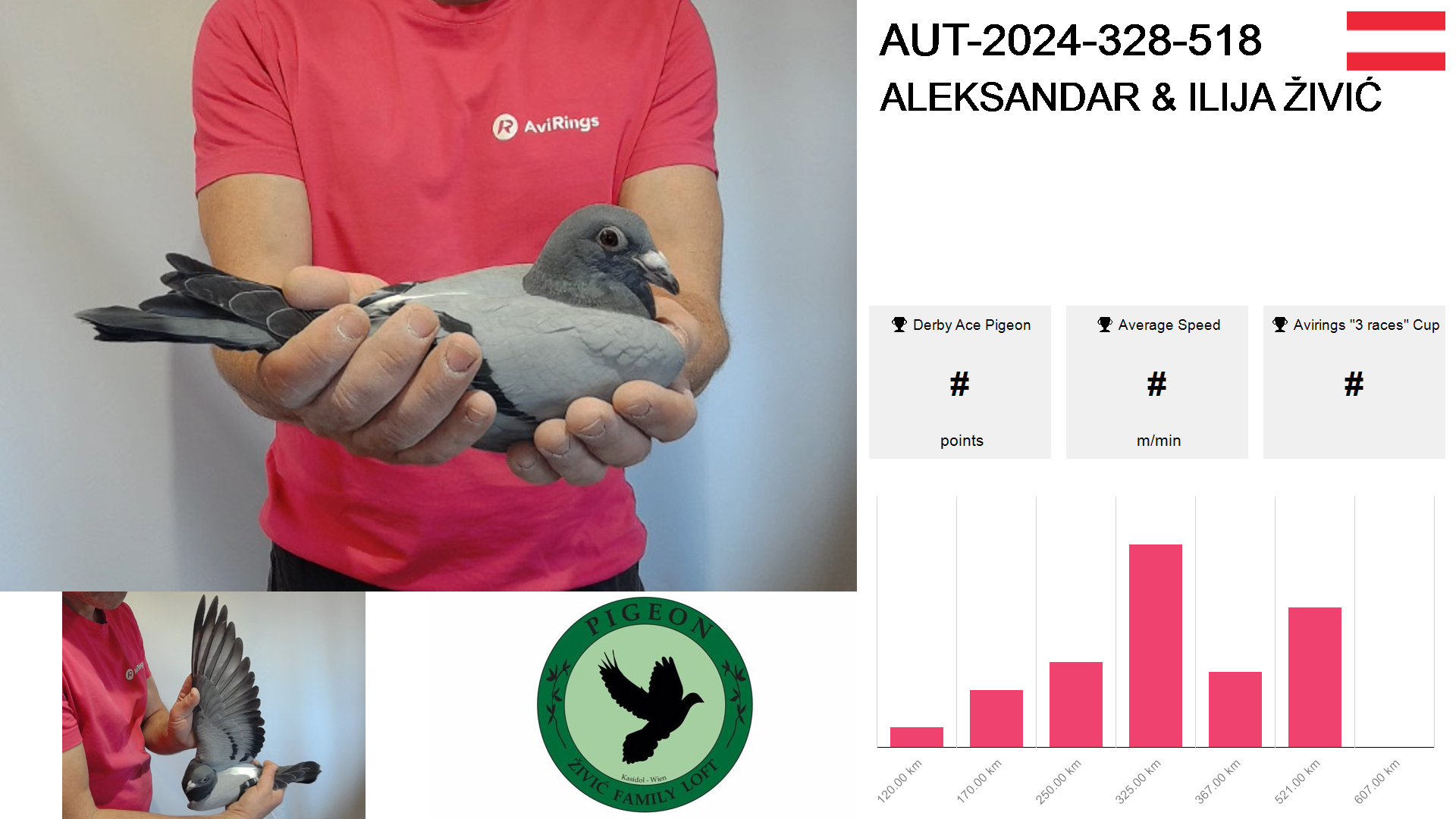 | Race | Position | Number of pigeons | Percent | Speed | Distance |