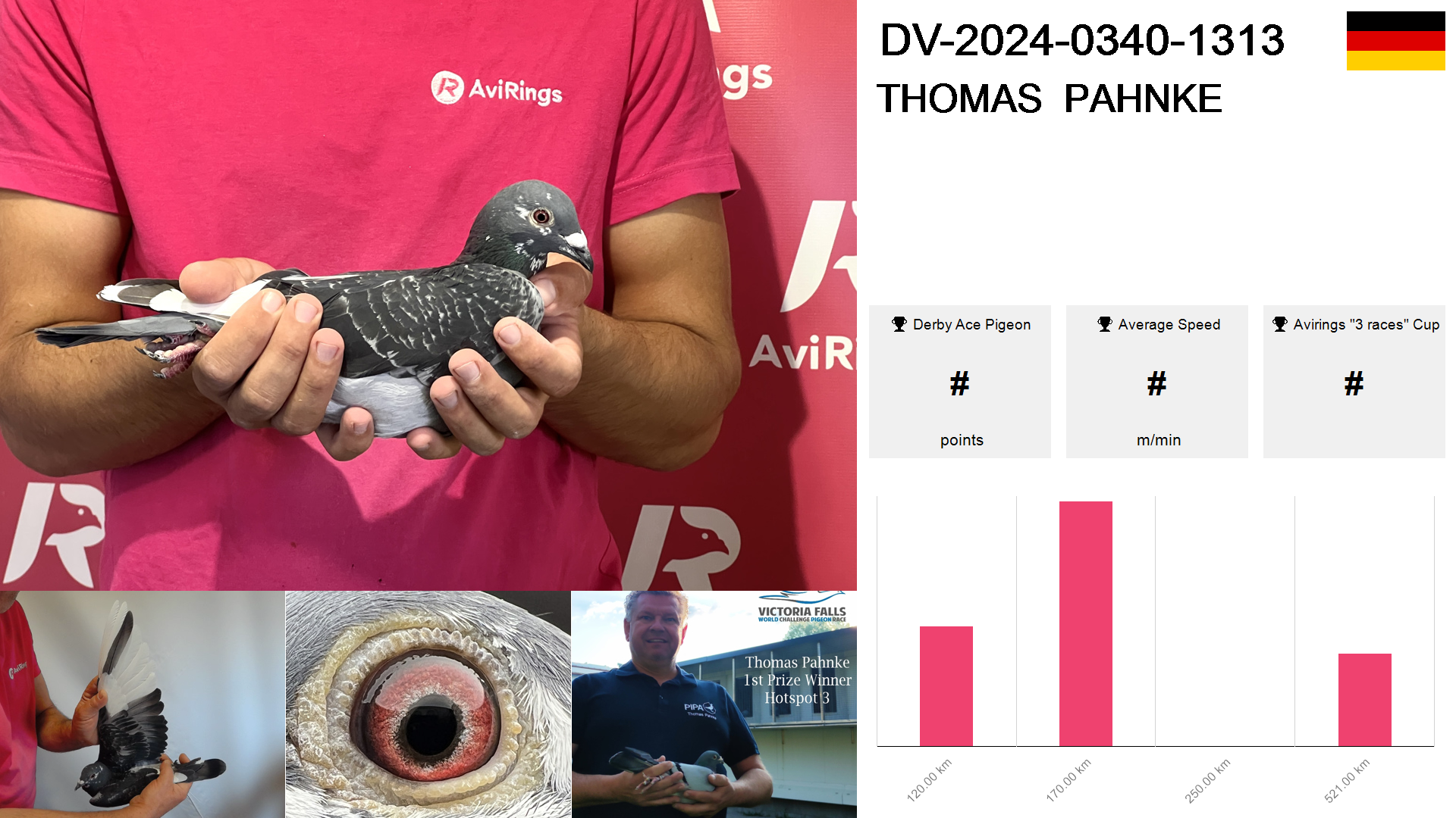 | Race | Position | Number of pigeons | Percent | Speed | Distance |