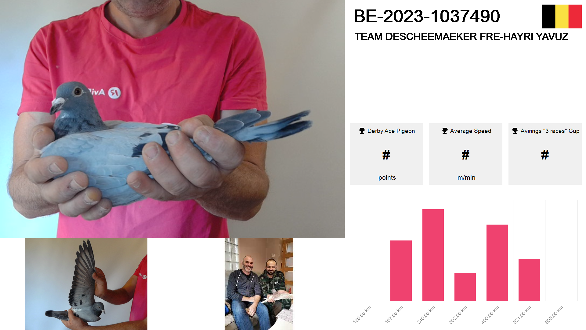 | Race | Position | Number of pigeons | Percent | Speed | Distance |