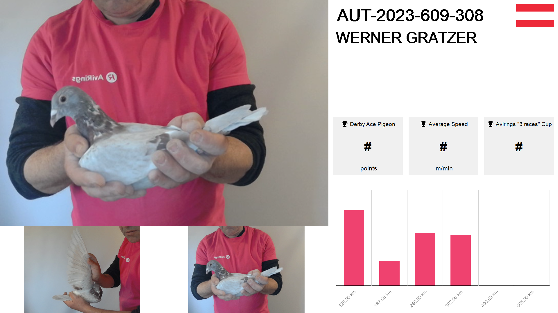 | Race | Position | Number of pigeons | Percent | Speed | Distance |
