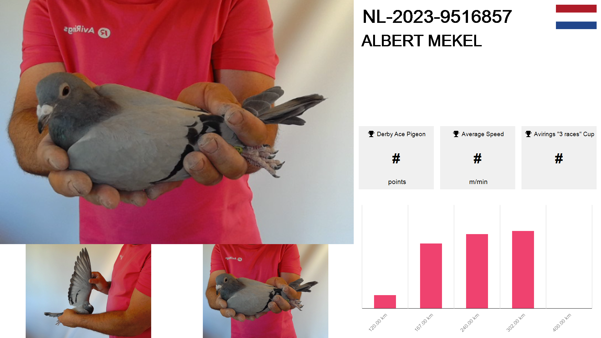 | Race | Position | Number of pigeons | Percent | Speed | Distance |