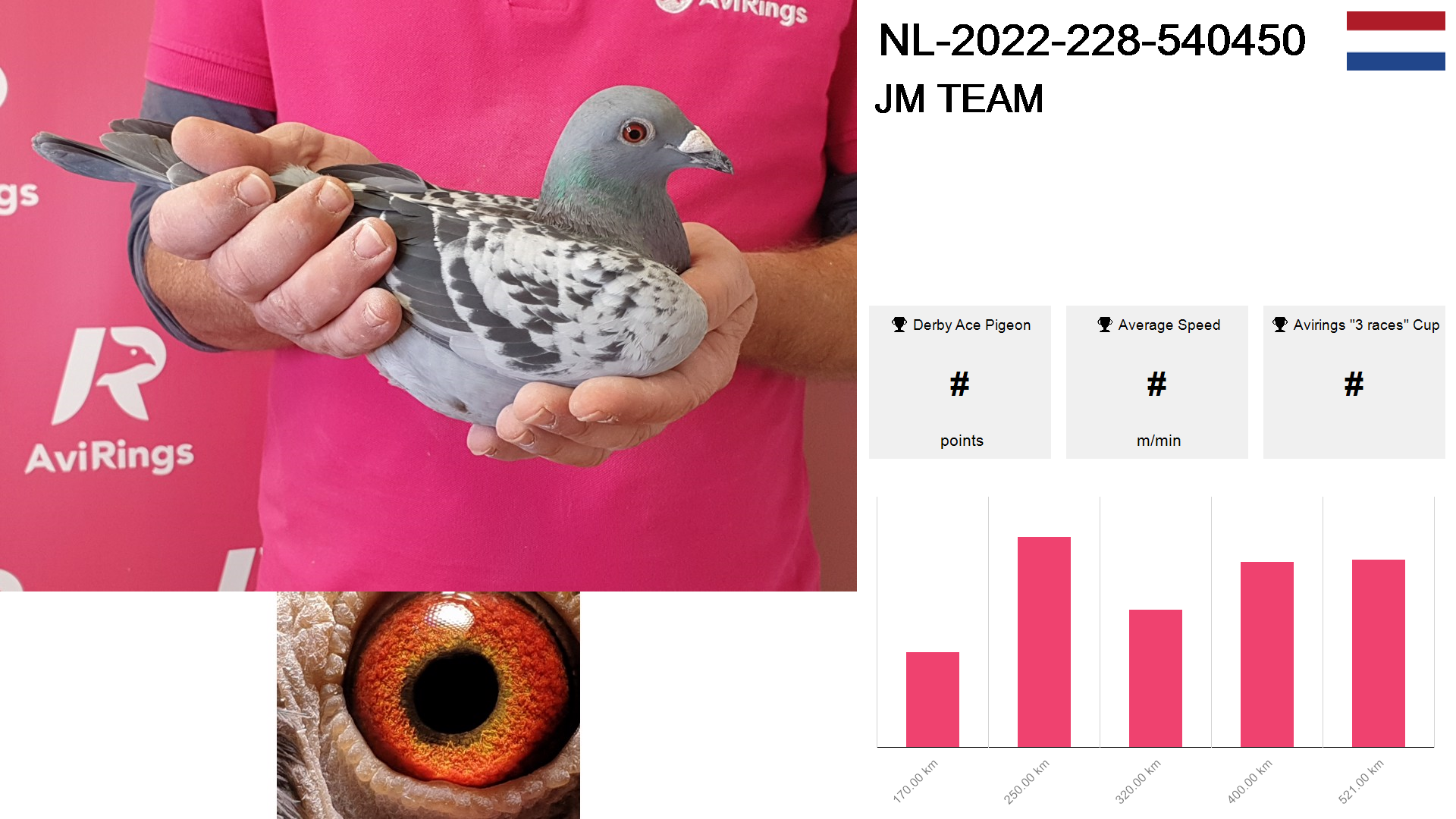 | Race | Position | Number of pigeons | Percent | Speed | Distance |