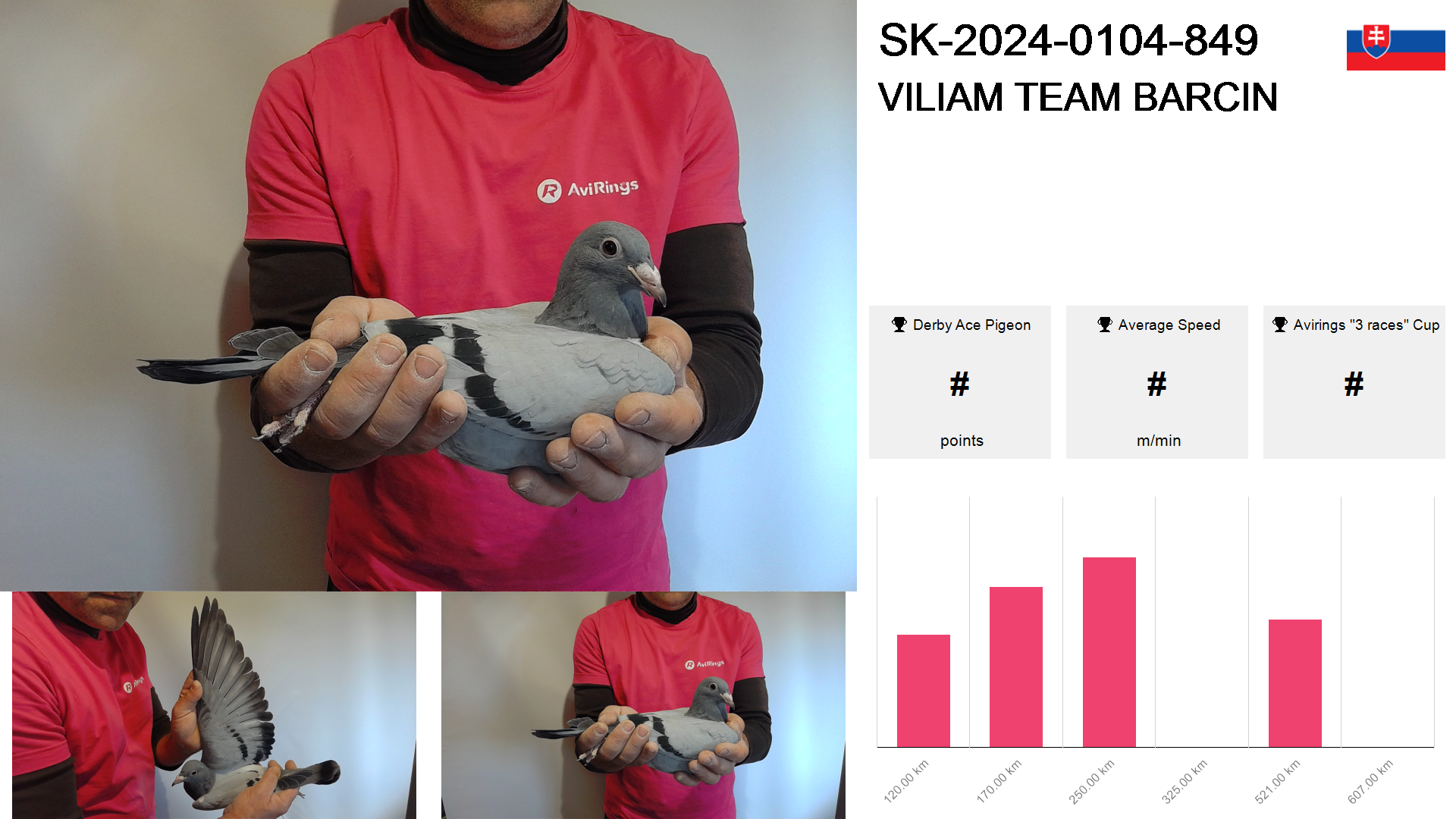 | Race | Position | Number of pigeons | Percent | Speed | Distance |
