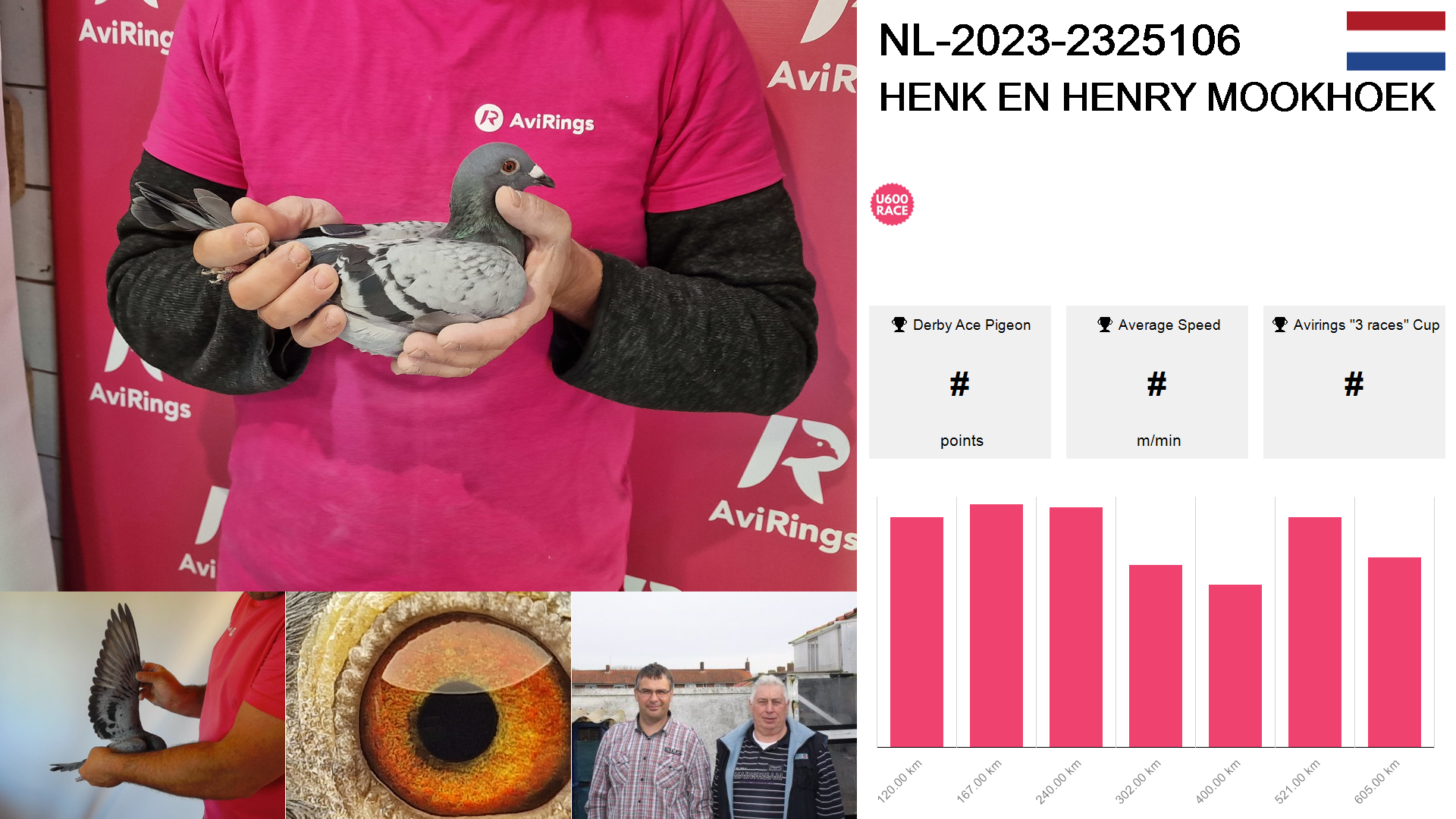 | Race | Position | Number of pigeons | Percent | Speed | Distance |
