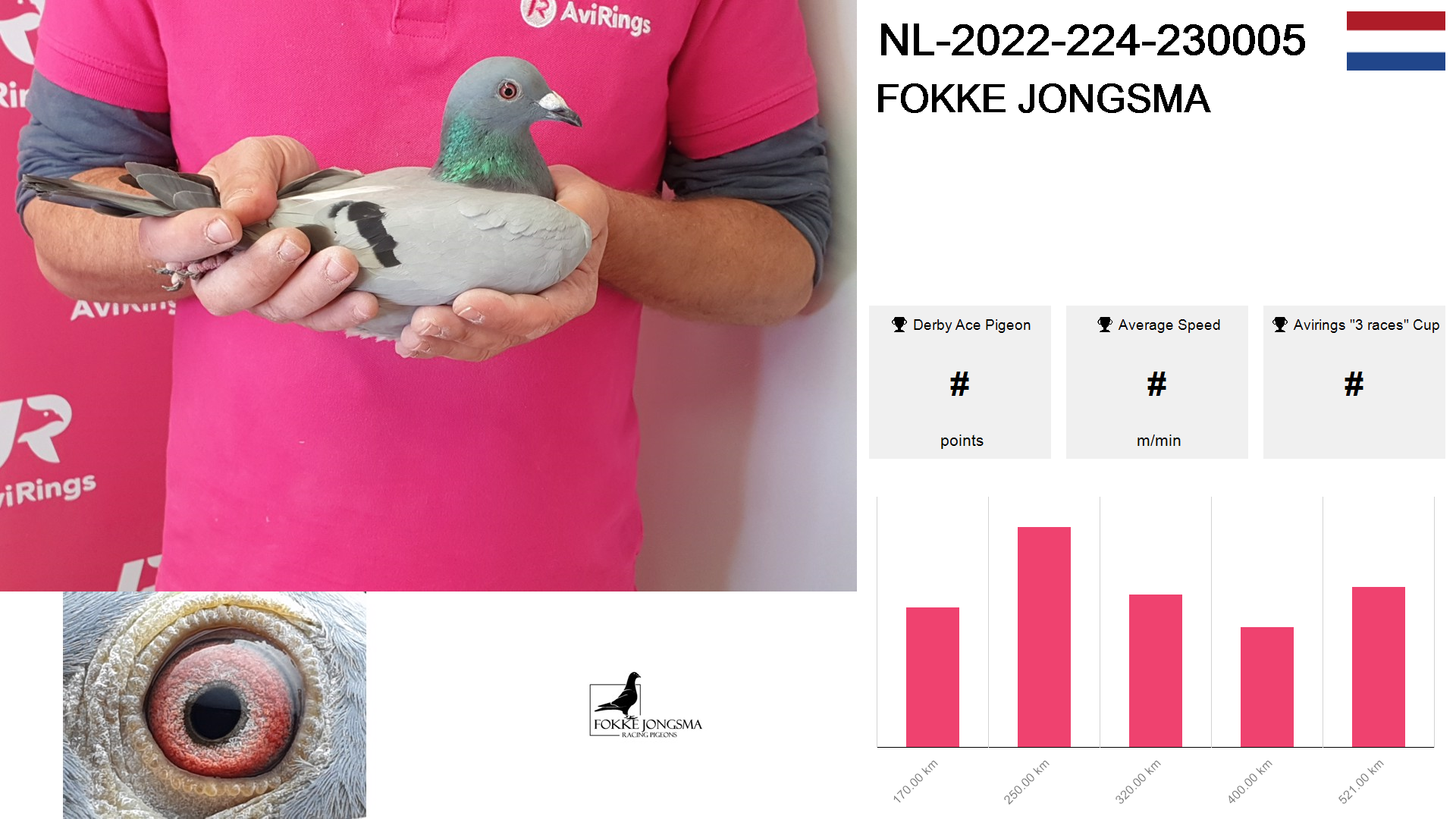 | Race | Position | Number of pigeons | Percent | Speed | Distance |