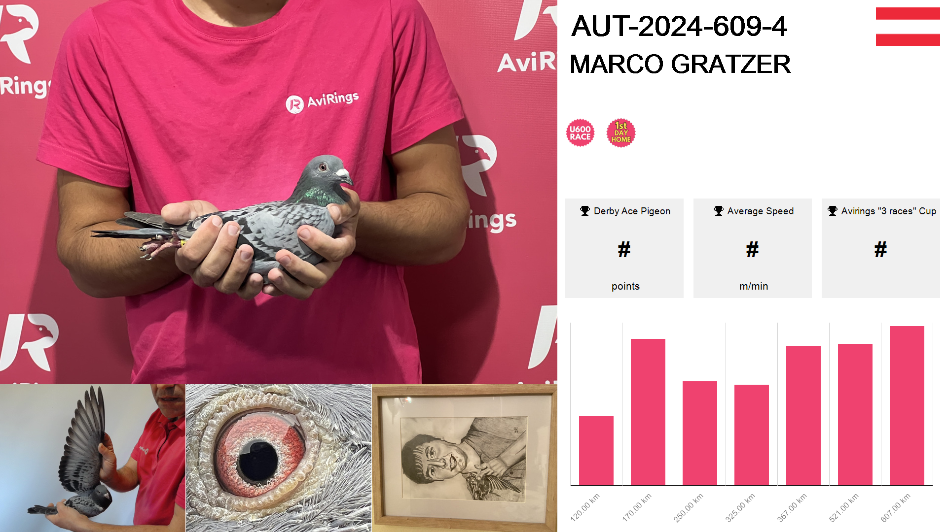 | Race | Position | Number of pigeons | Percent | Speed | Distance |