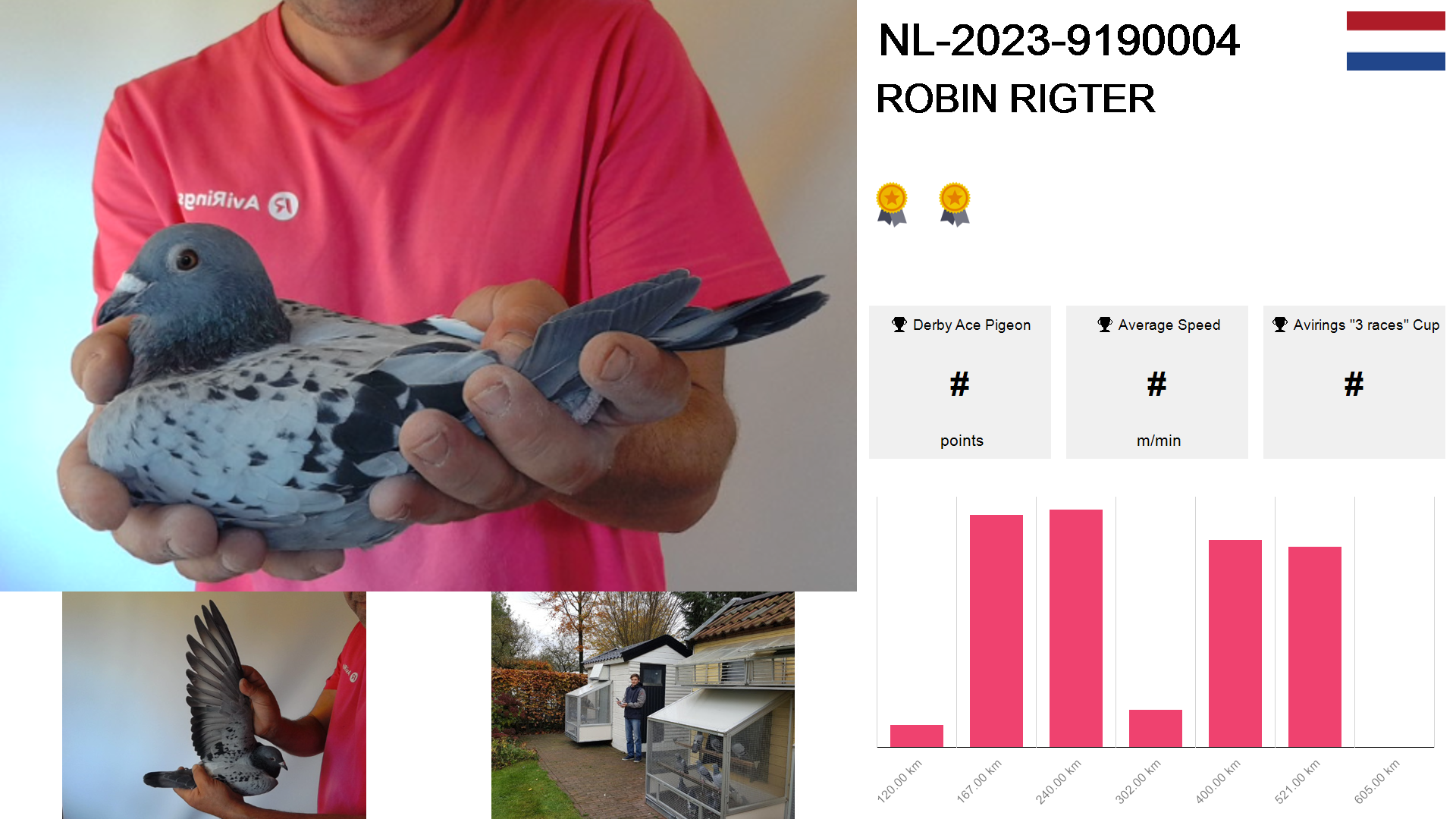 | Race | Position | Number of pigeons | Percent | Speed | Distance |