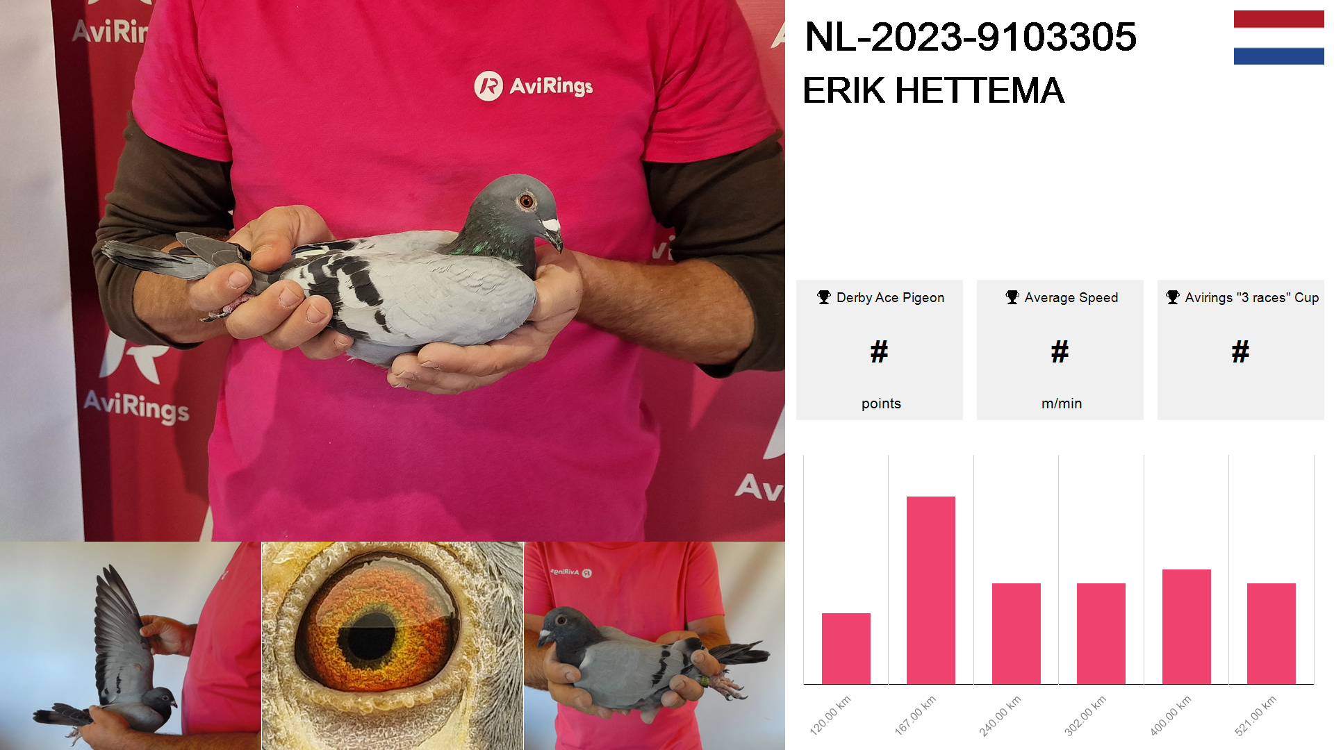 | Race | Position | Number of pigeons | Percent | Speed | Distance |