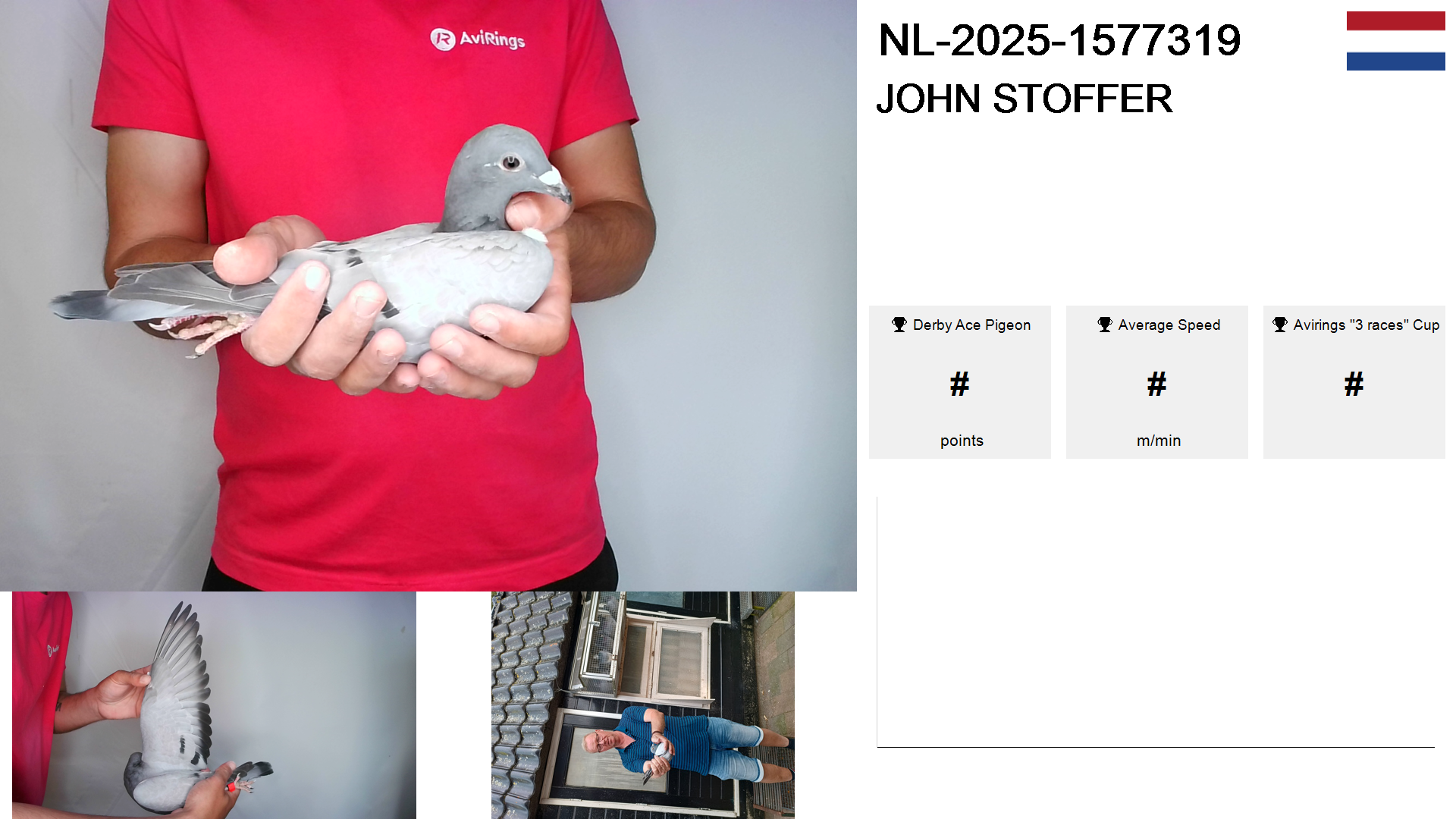 | Race | Position | Number of pigeons | Percent | Speed | Distance |