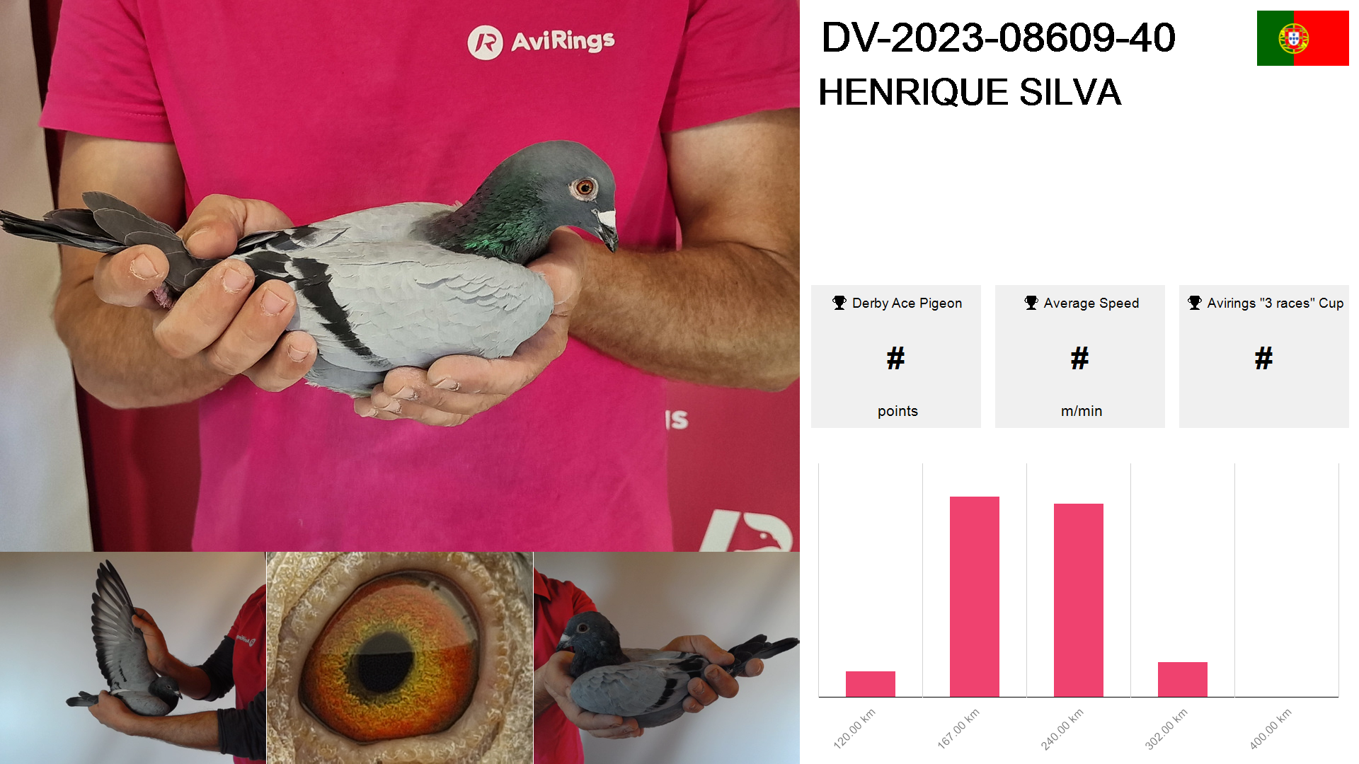 | Race | Position | Number of pigeons | Percent | Speed | Distance |