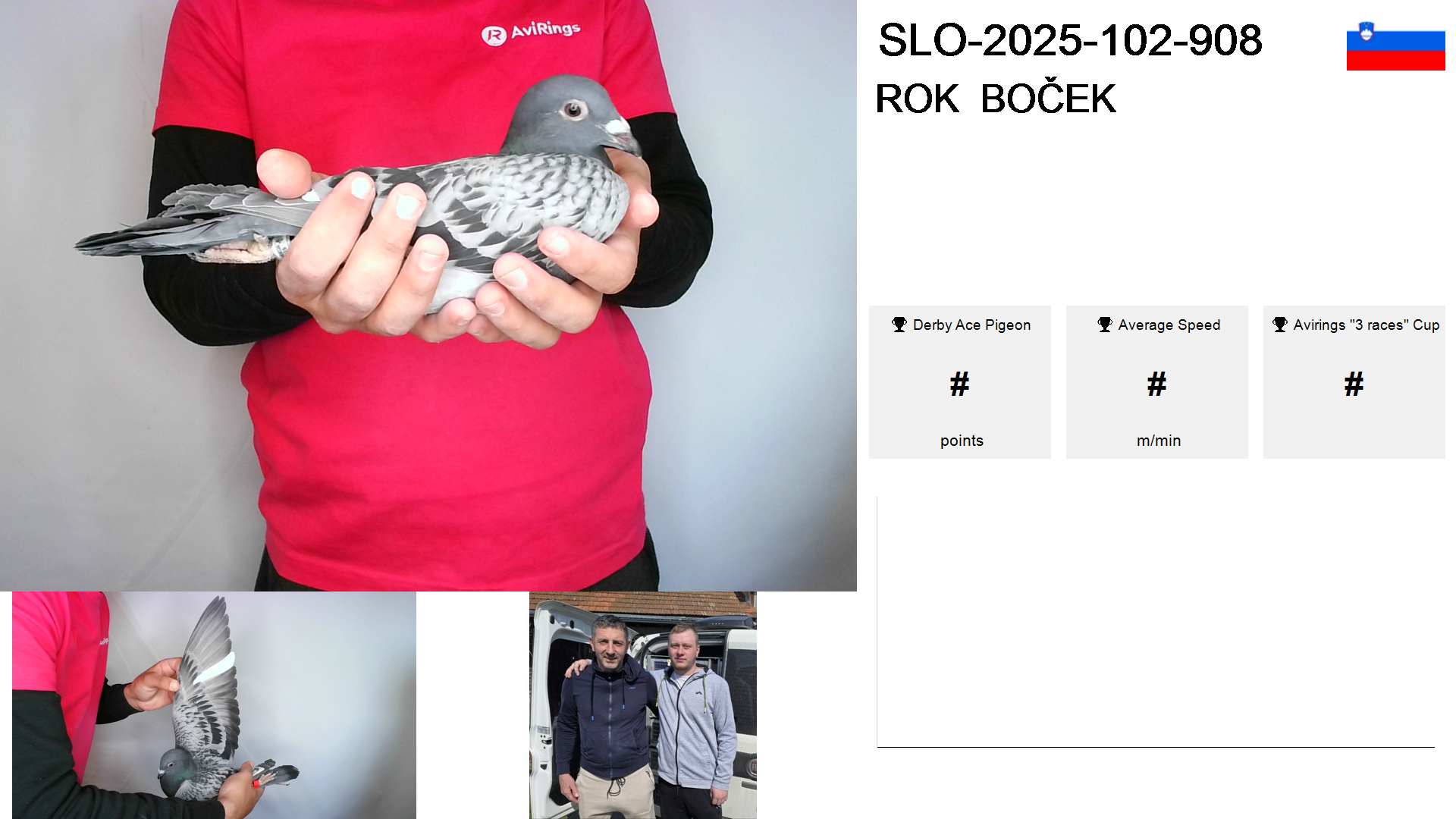 | Race | Position | Number of pigeons | Percent | Speed | Distance |