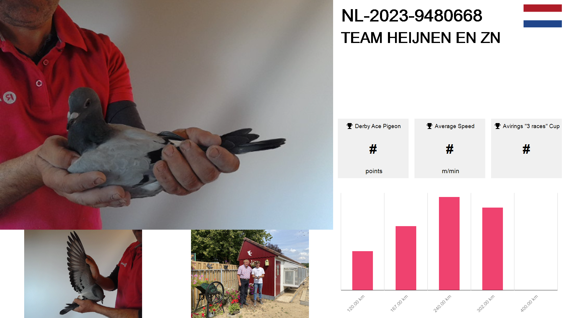 | Race | Position | Number of pigeons | Percent | Speed | Distance |