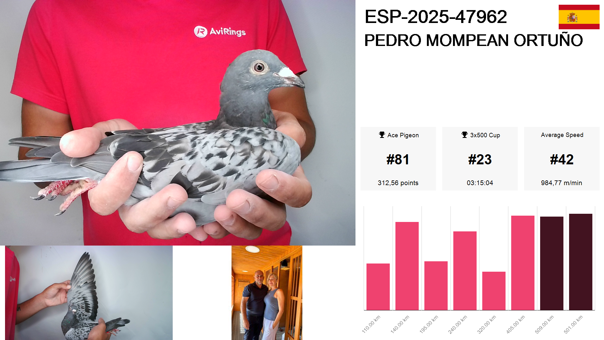 | Race | Position | Number of pigeons | Percent | Speed | Distance |