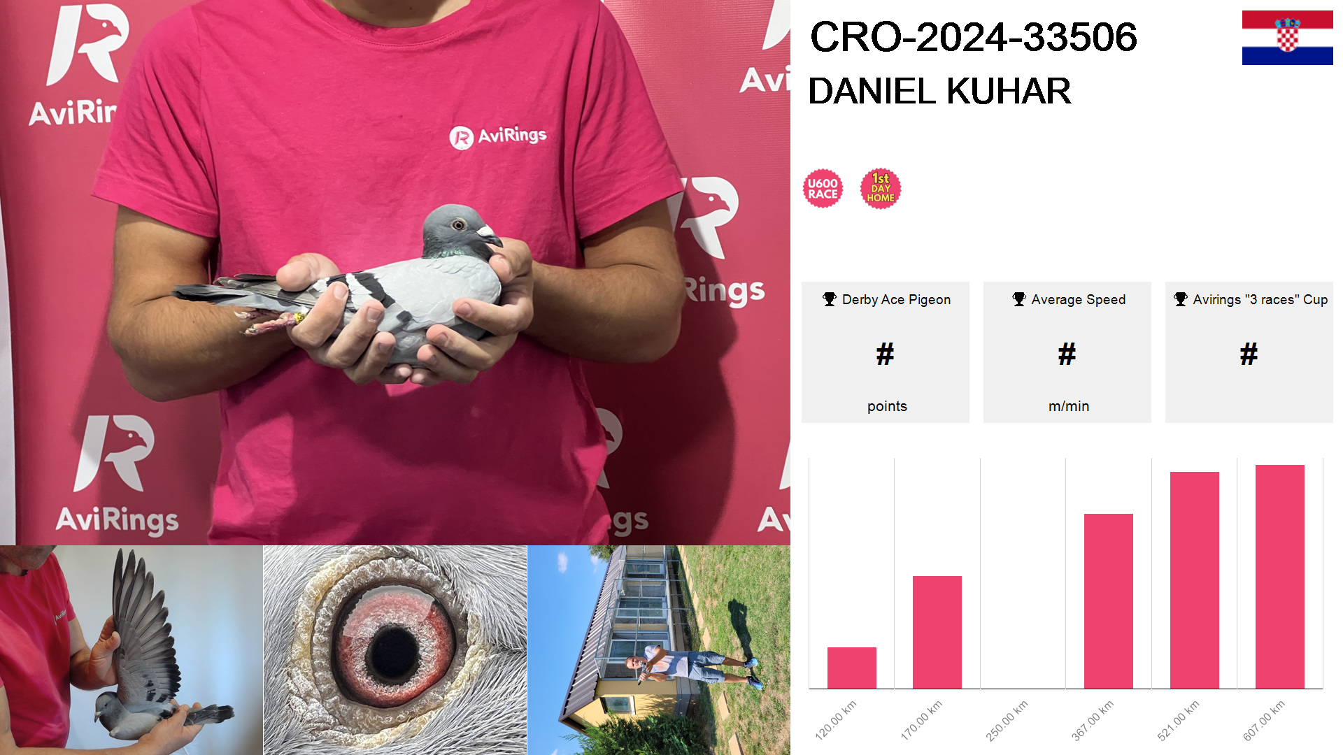 | Race | Position | Number of pigeons | Percent | Speed | Distance |