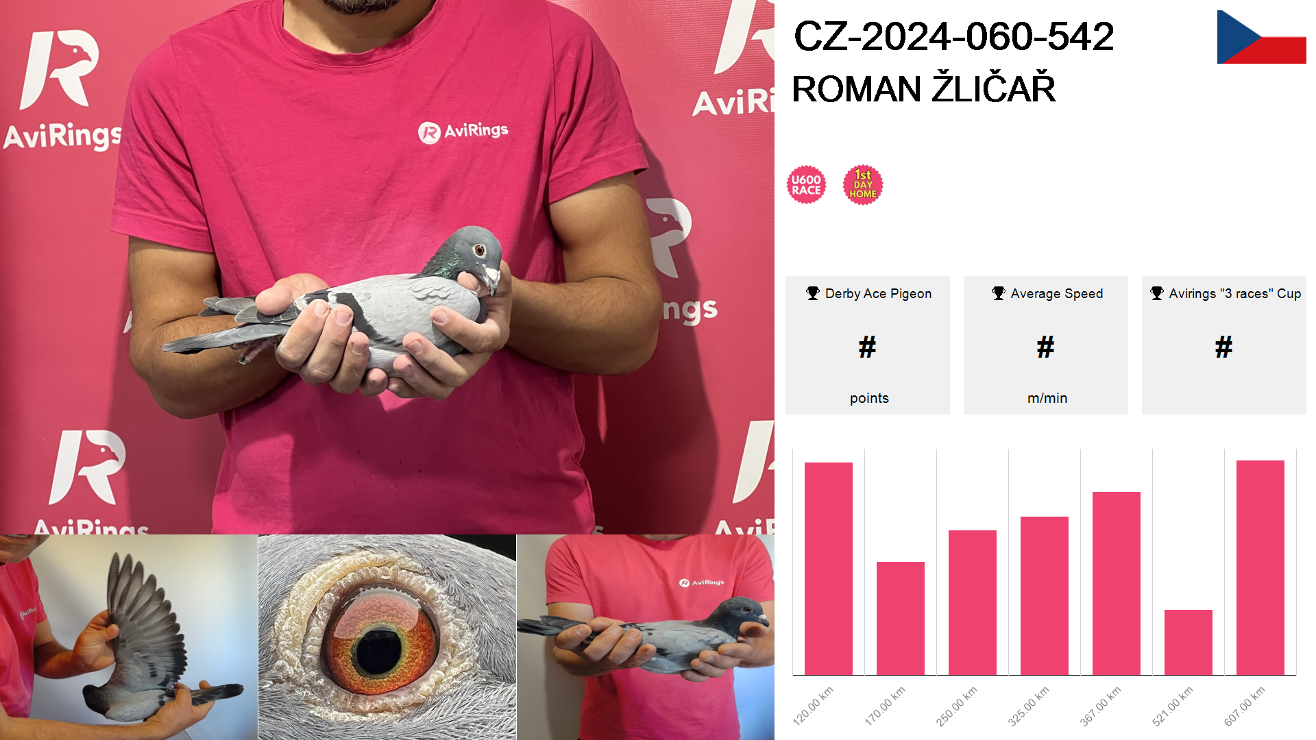 | Race | Position | Number of pigeons | Percent | Speed | Distance |